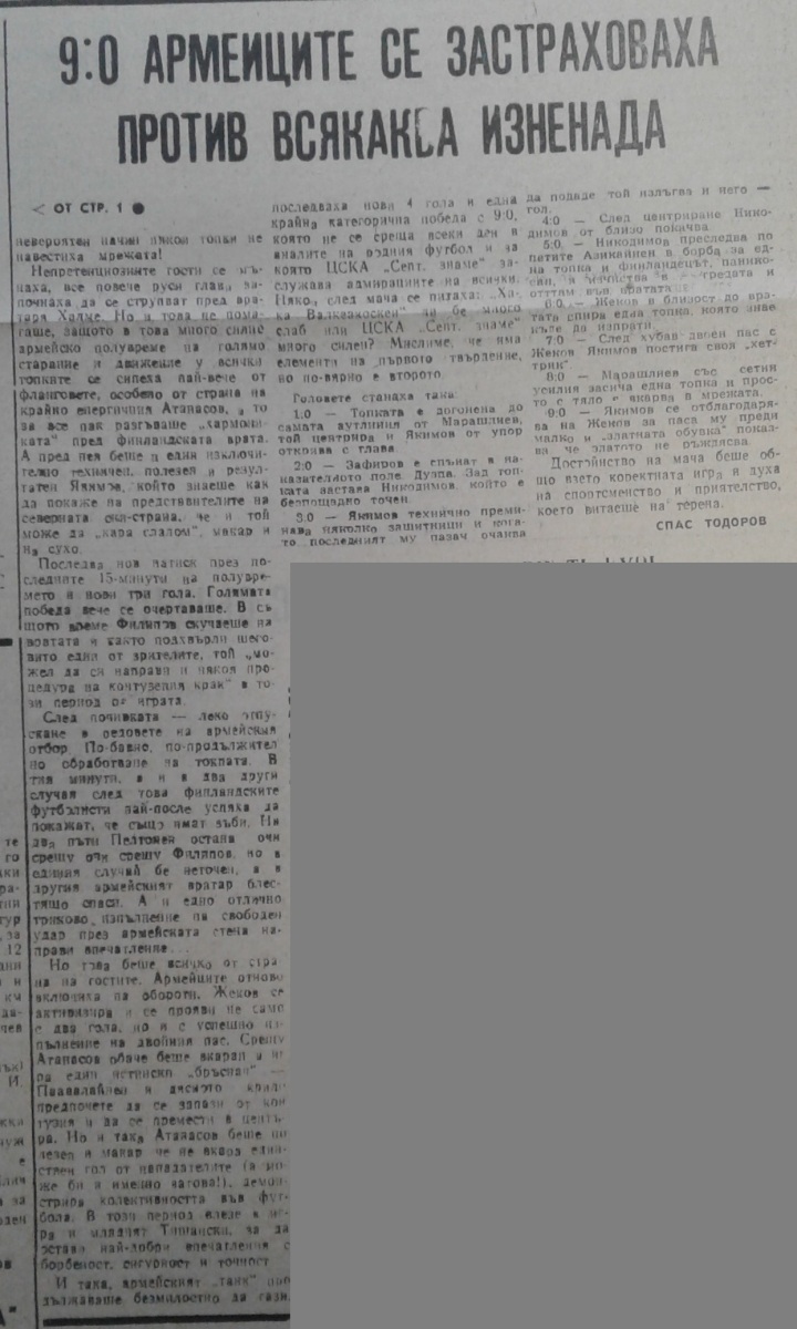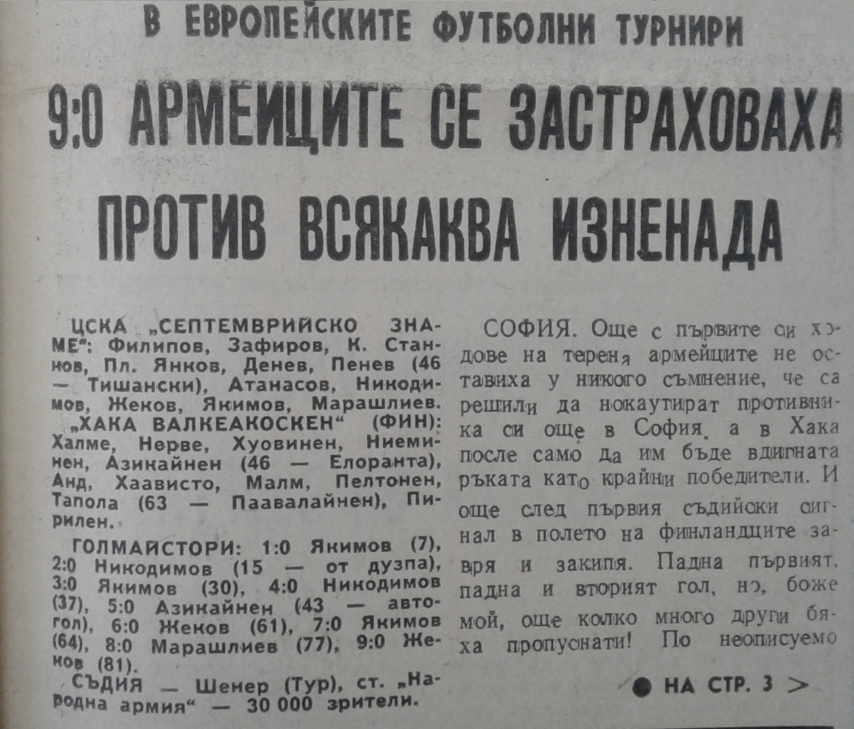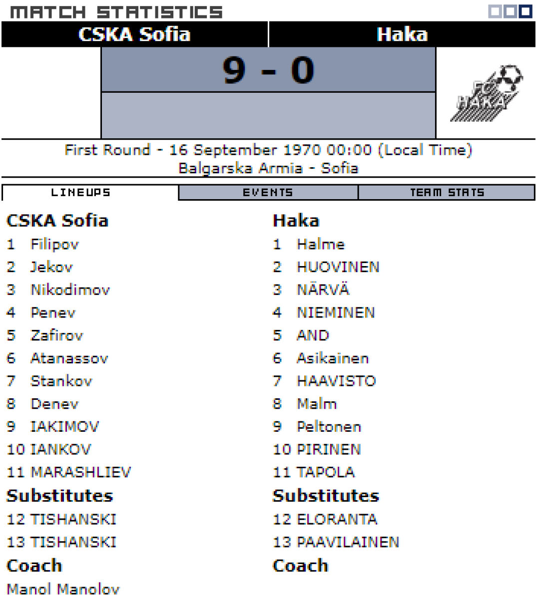 «ЦСКА Септемврийско Знаме» София - «Хака» Валкеакоски - 9:0