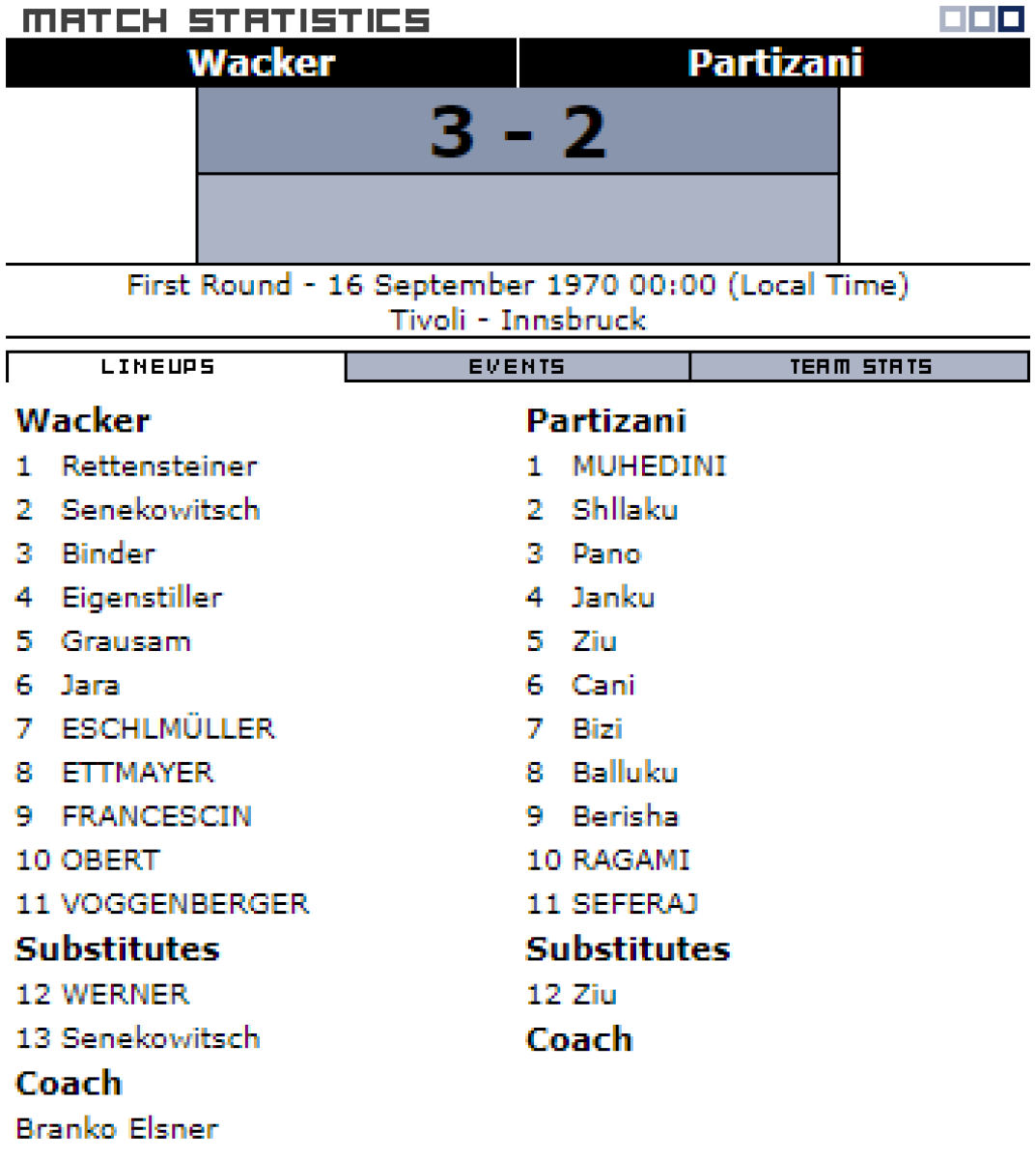 «Ваккер» Инсбрук - «Партизани» Тирана - 3:2
