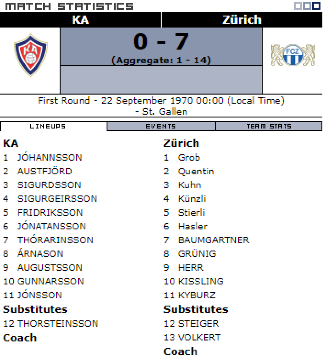 ИБА Акюрейри - «Цюрих» Цюрих - 0:7