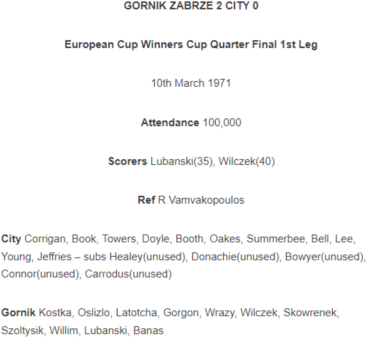 «Гурник» Забже - «Манчестер Сити» Манчестер - 2:0