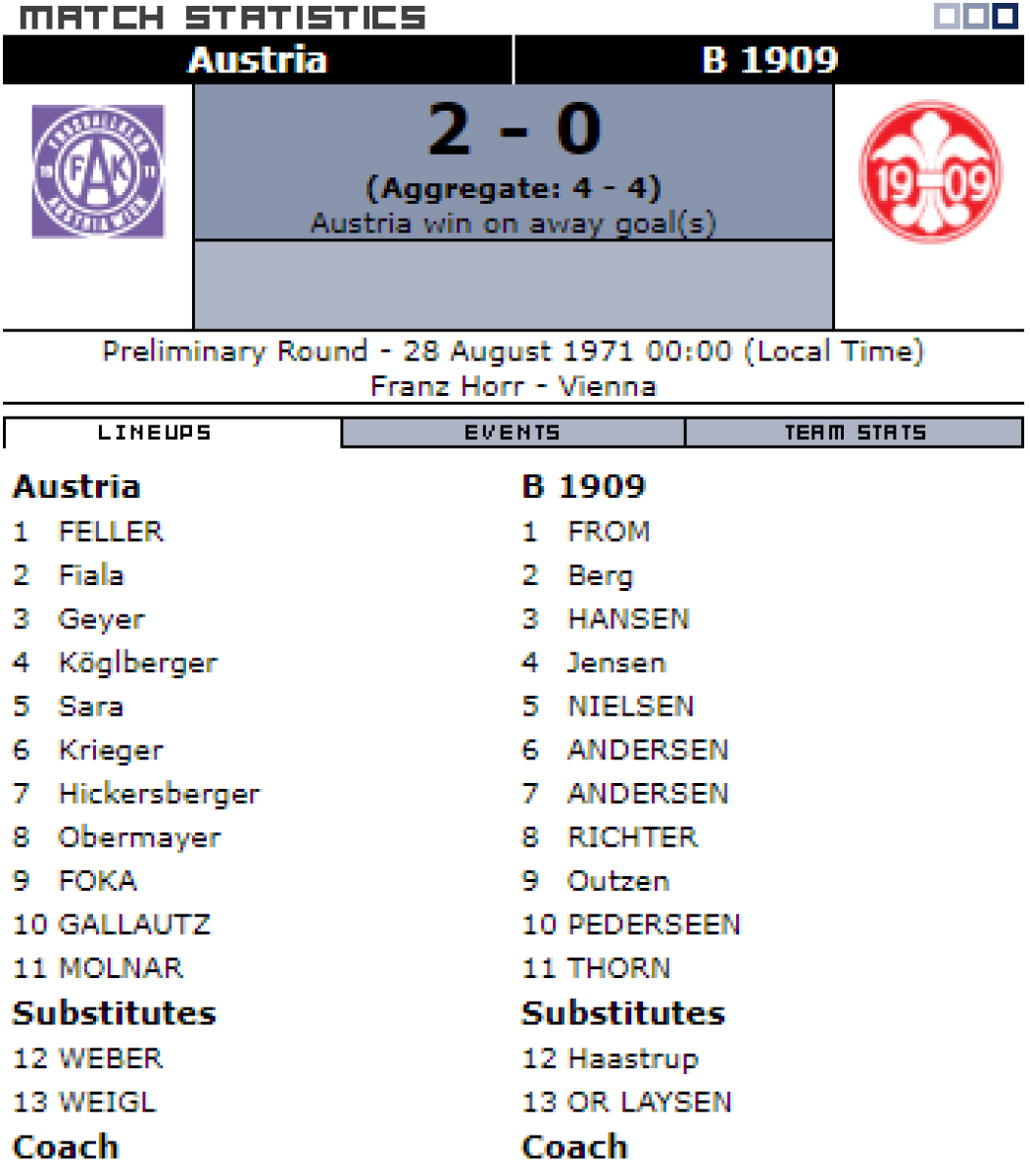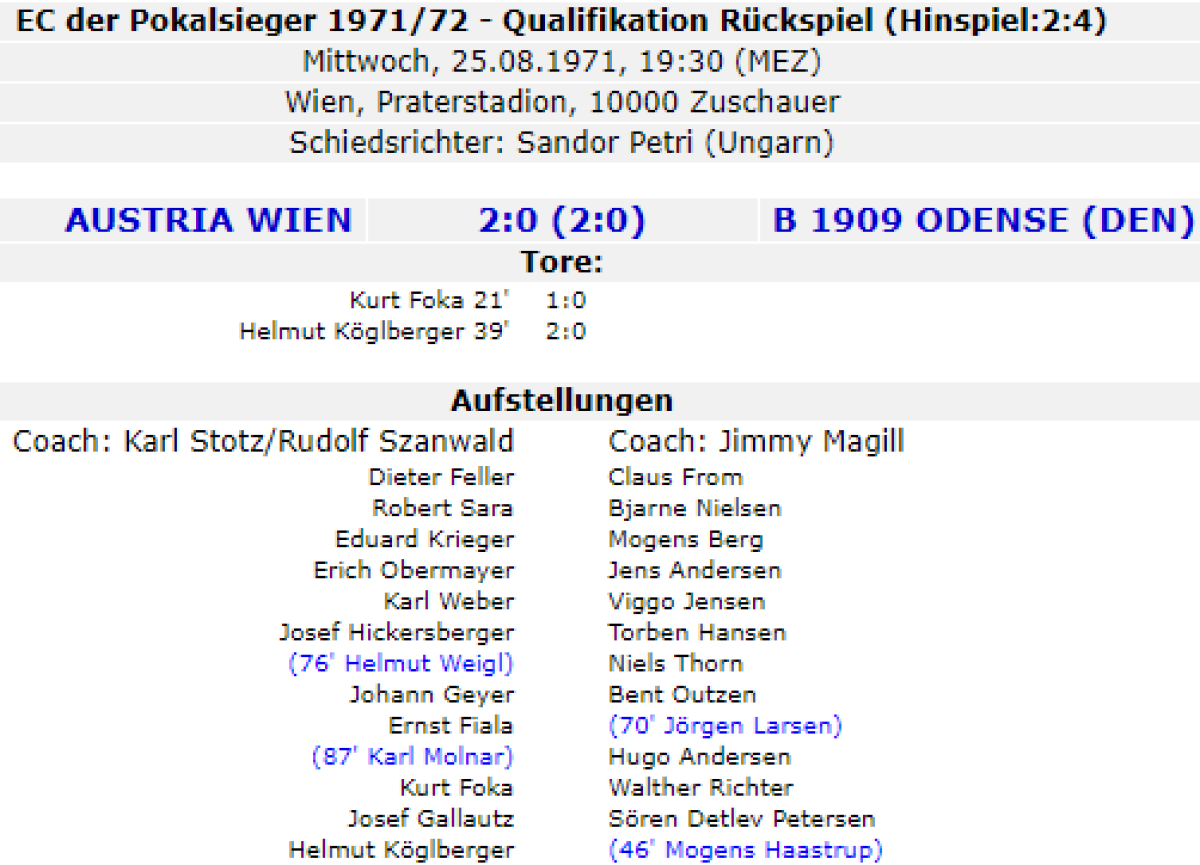 «Аустрия-ВАК» Вена - Б-1909 Оденсе - 2:0