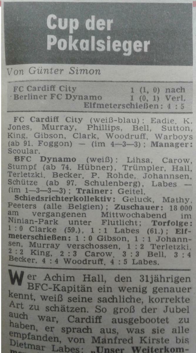 «Кардифф Сити» Кардифф - «Динамо» Берлин - 1:1