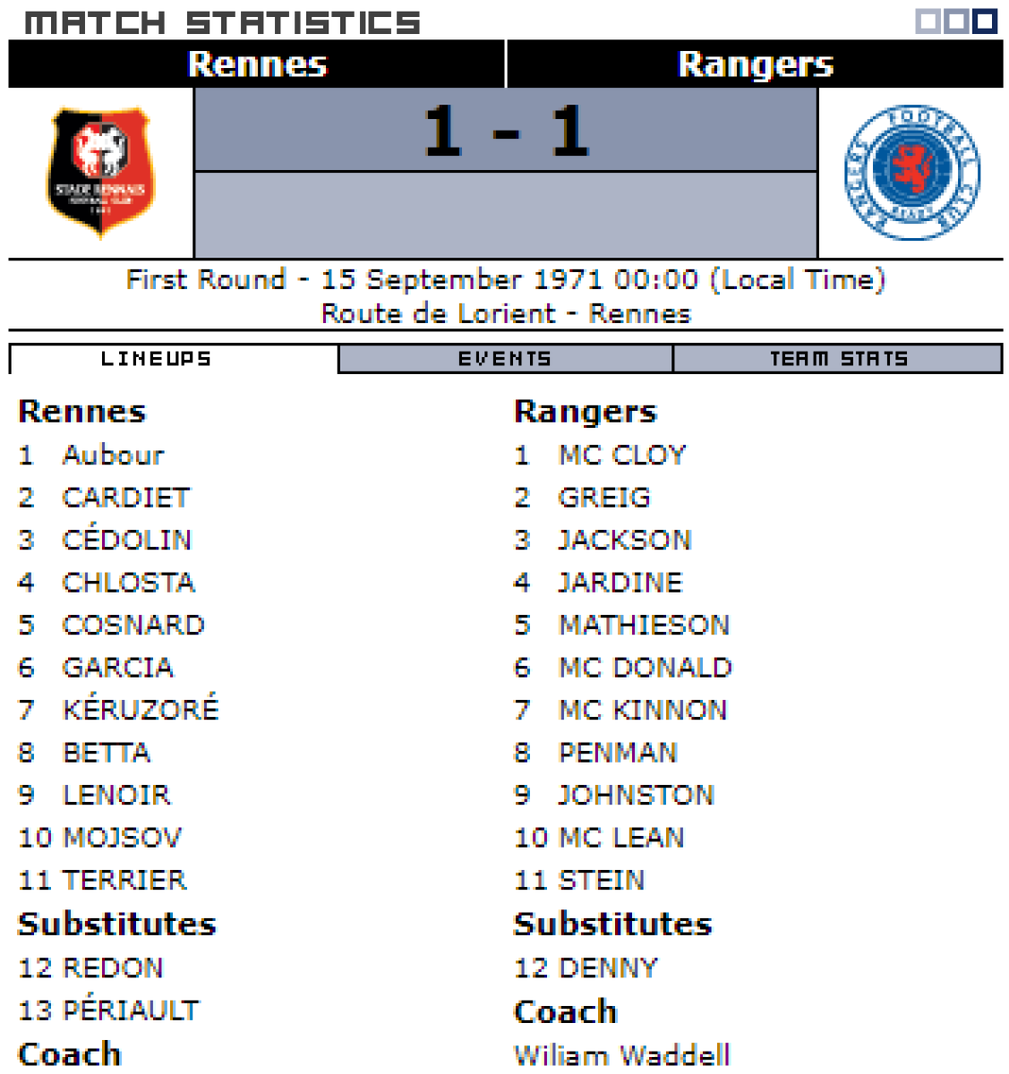 «Стад Ренн Университе» Ренн - «Рейнджерс» Глазго - 1:1