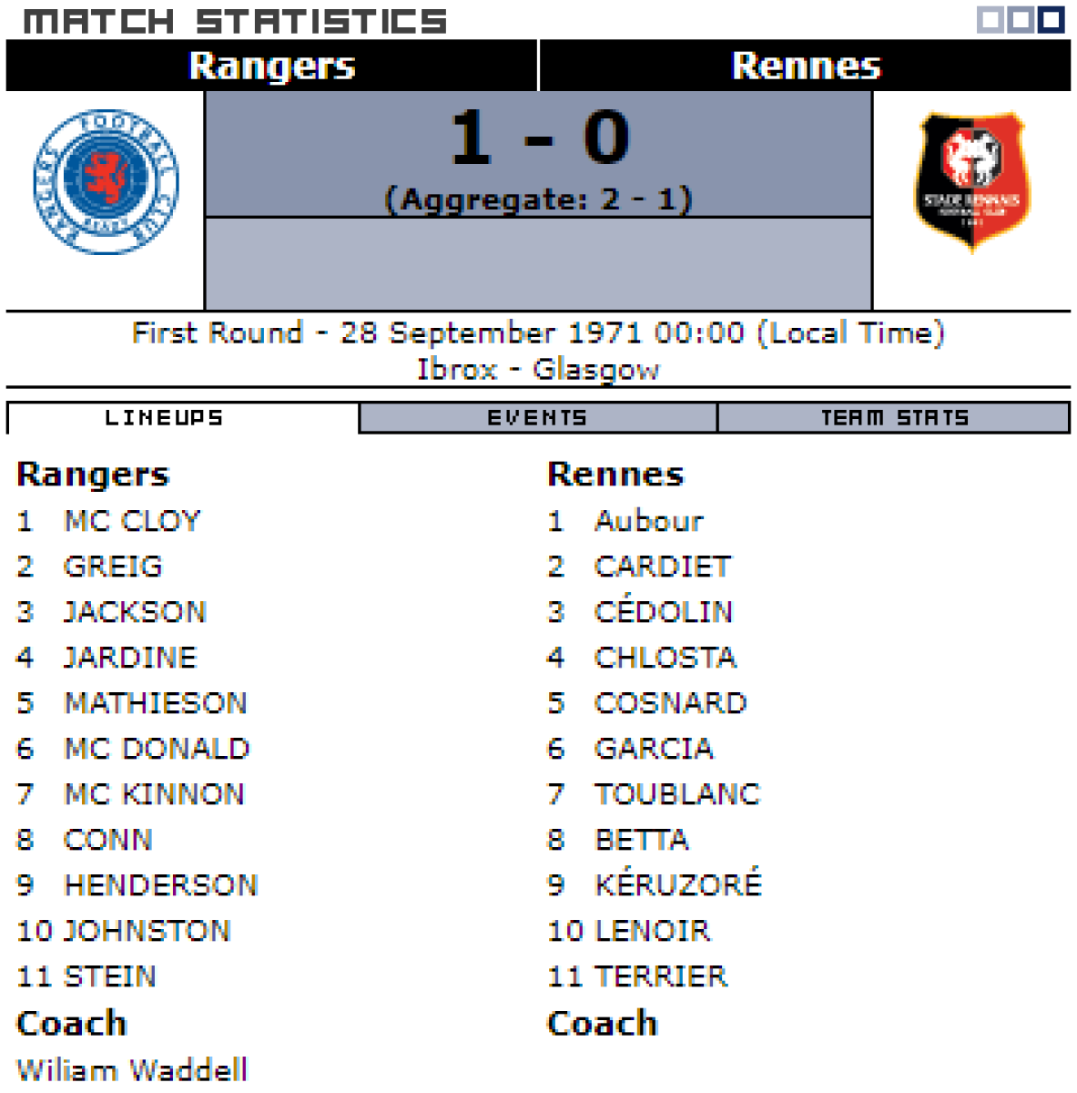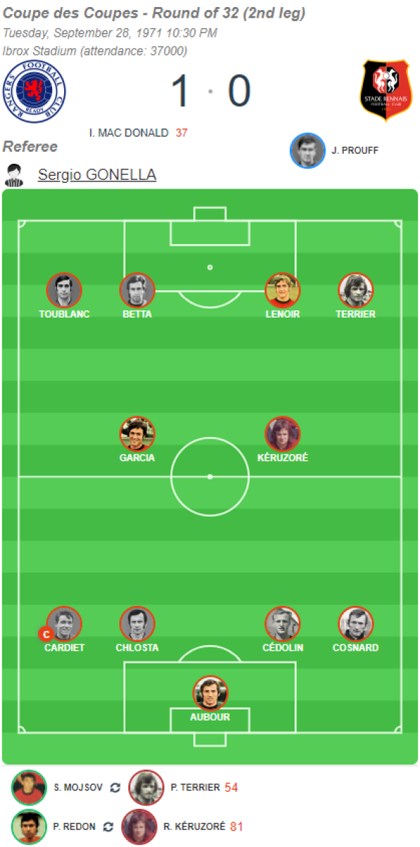 «Рейнджерс» Глазго - «Стад Ренн Университе» Ренн - 1:0