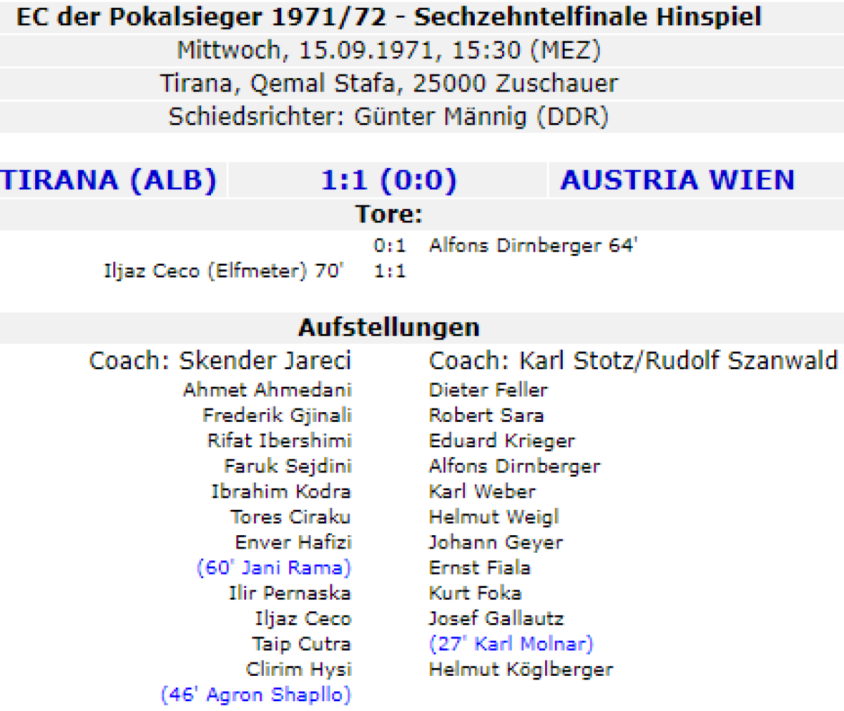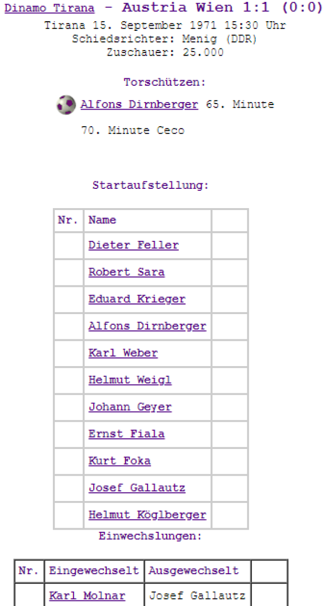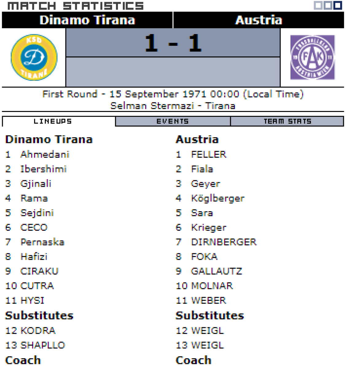 «Динамо» Тирана - «Аустрия-ВАК» Вена - 1:1