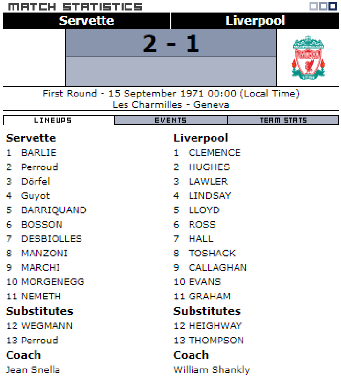 «Серветт» Женева - «Ливерпуль» Ливерпуль - 2:1