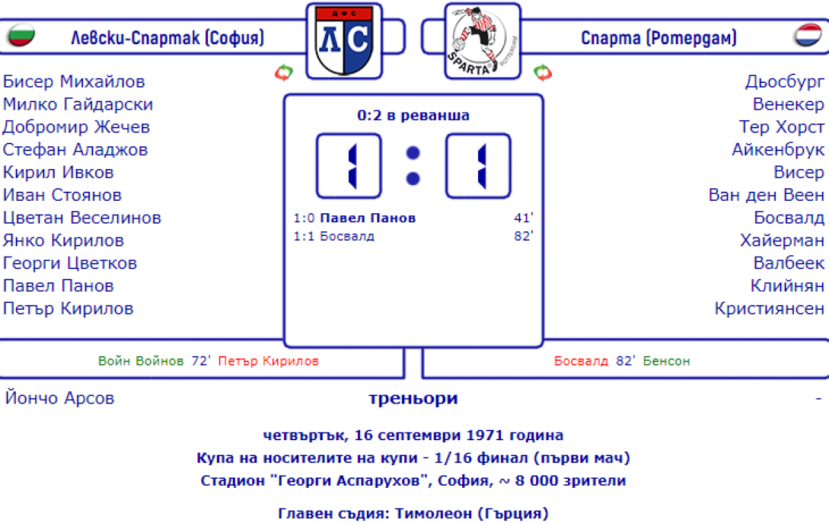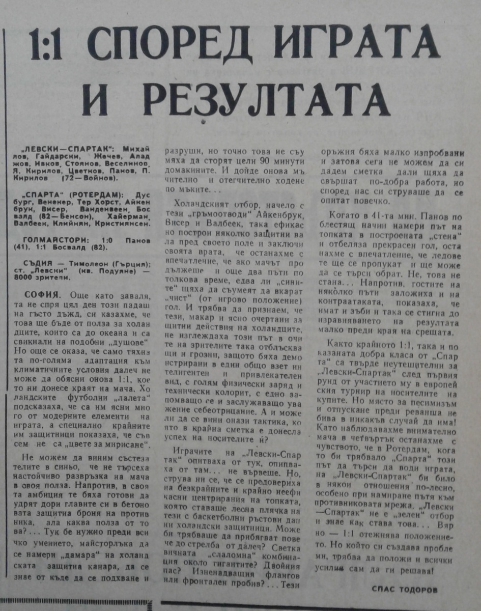 «Левски-Спартак» София - «Спарта» Роттердам - 1:1