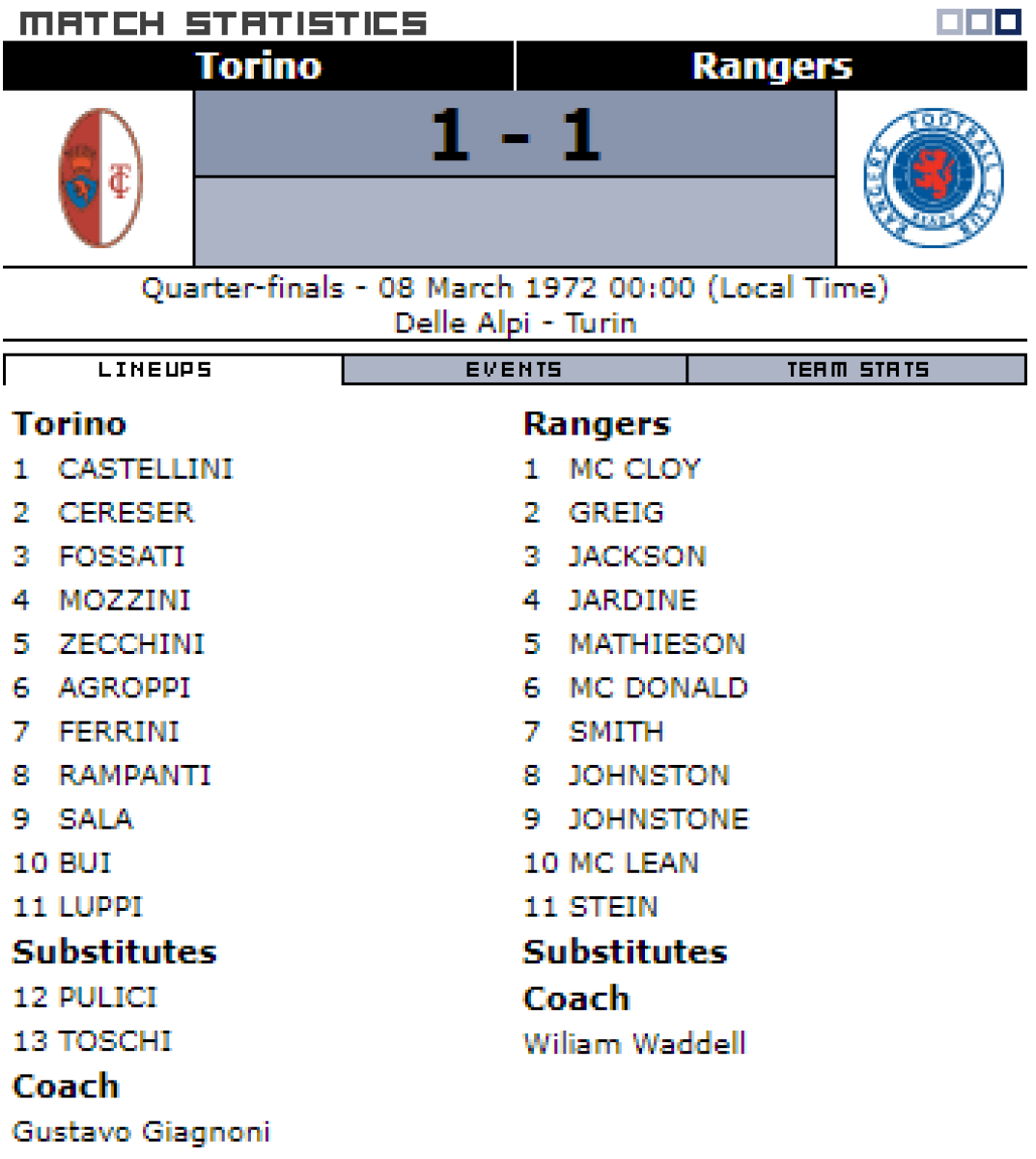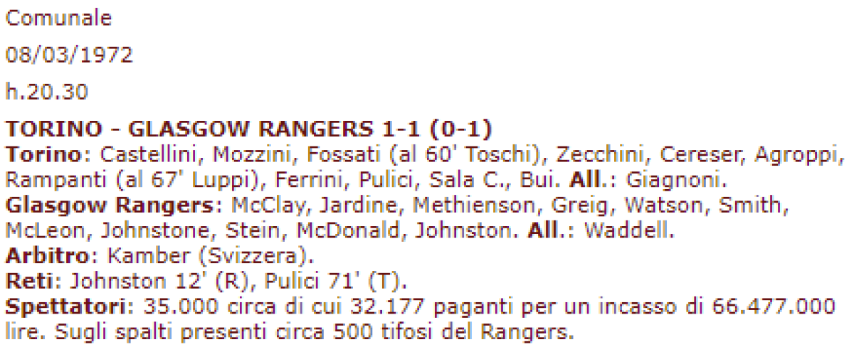 «Торино Кальчо» Турин - «Рейнджерс» Глазго - 1:1