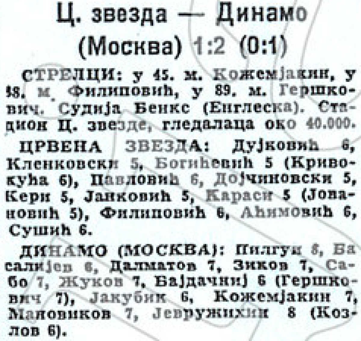 «Црвена Звезда» Белград - «Динамо» Москва - 1:2