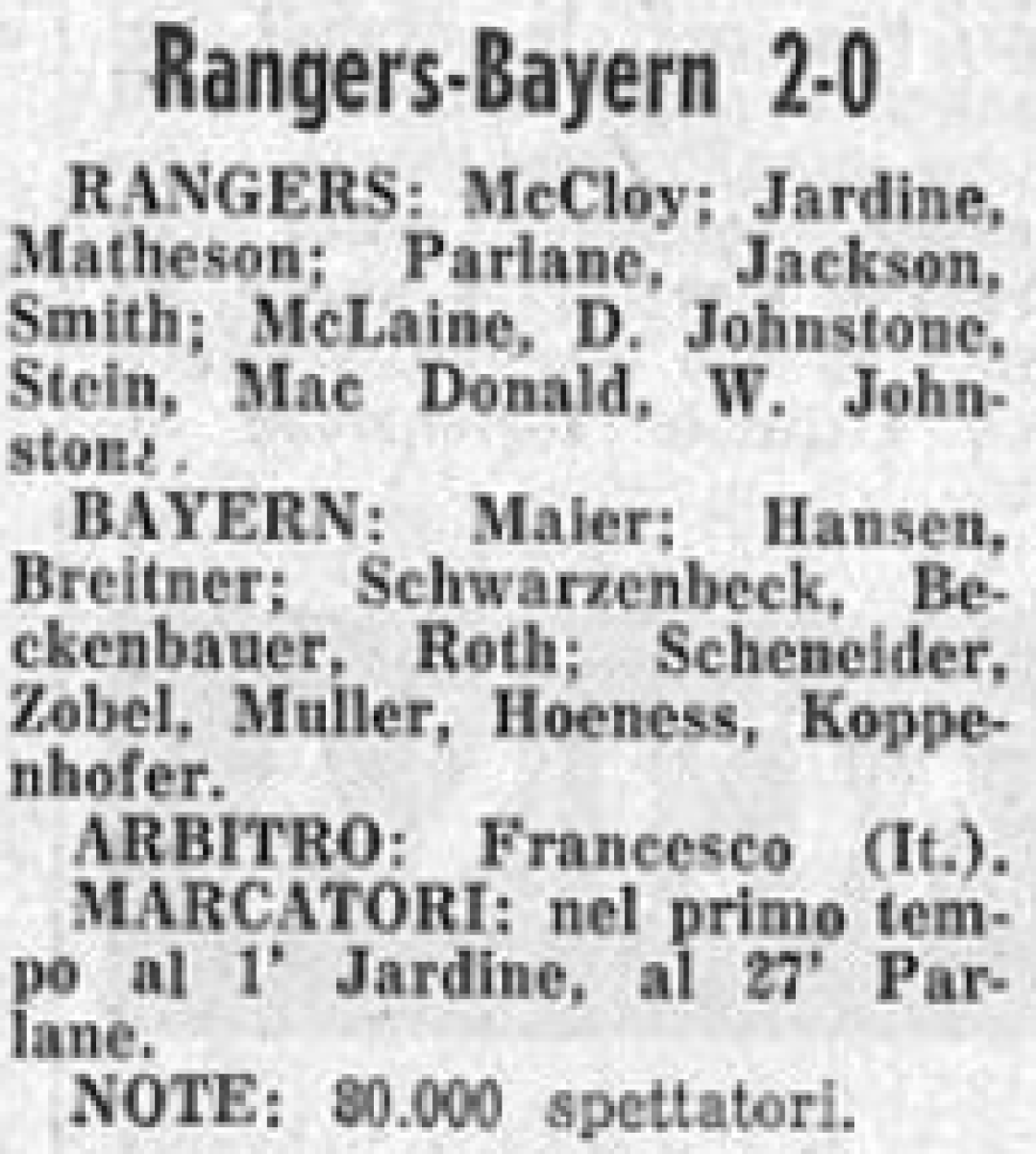 «Рейнджерс» Глазго - «Бавария» Мюнхен - 2:0