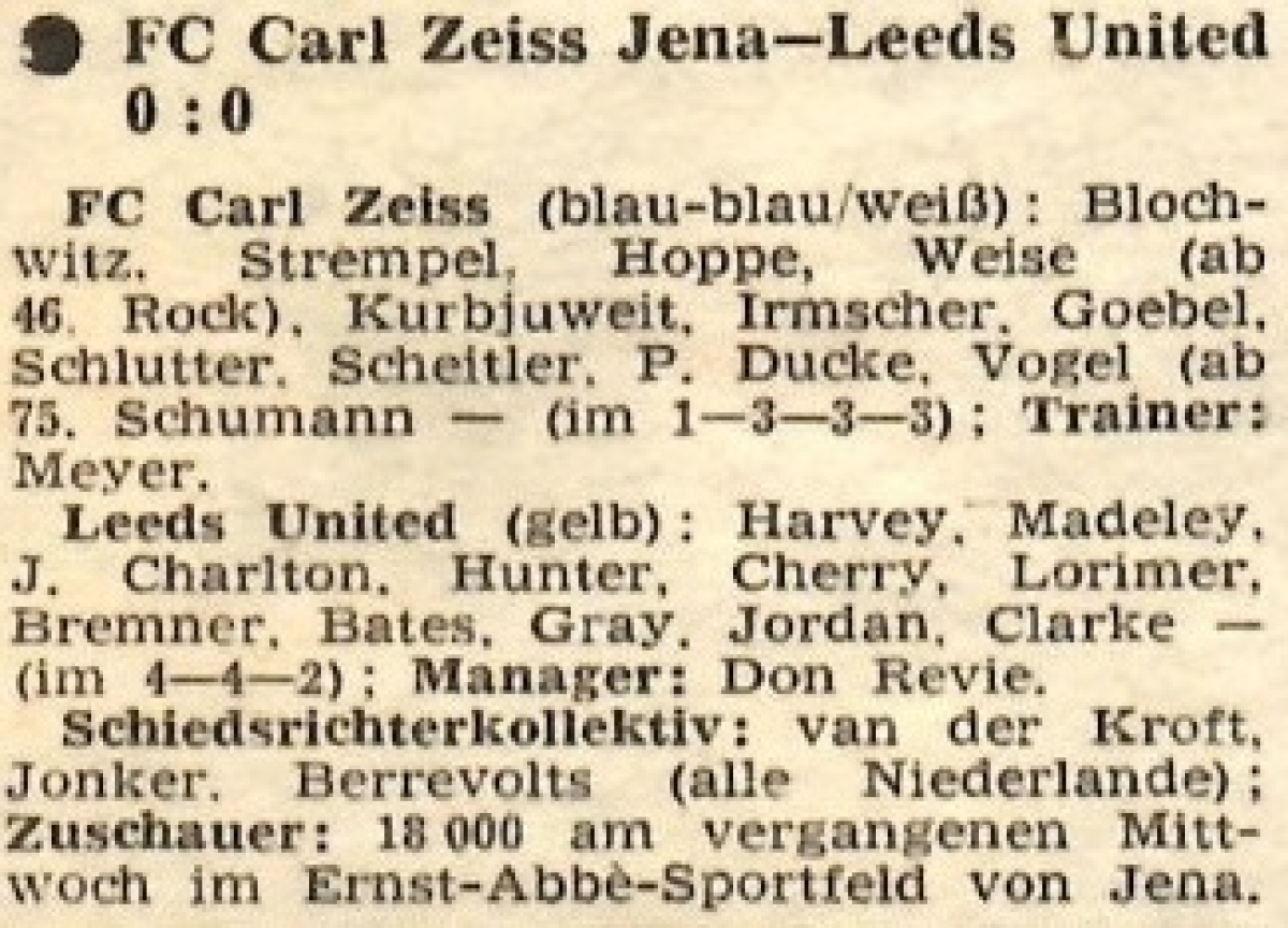 «Карл Цейсс» Йена - «Лидс Юнайтед» Лидс - 0:0