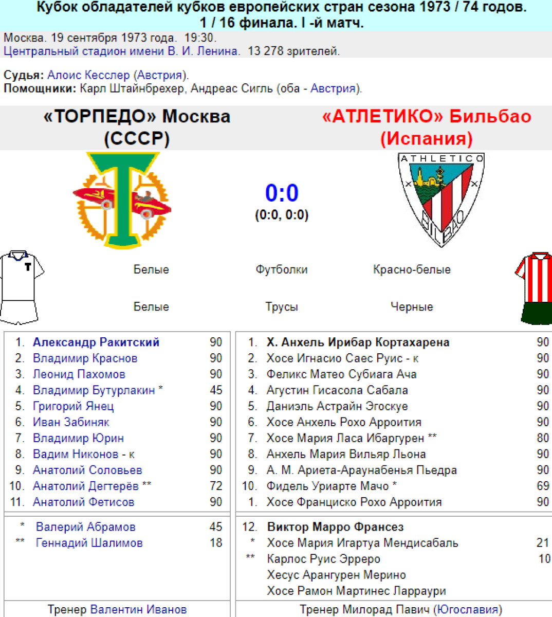 «Торпедо» Москва - «Атлетик Клуб де Бильбао» Бильбао - 0:0