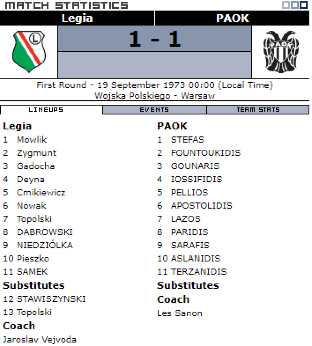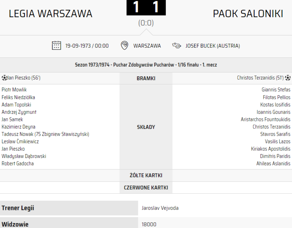 «ЦВСК Легия» Варшава - ПАОК Салоники - 1:1