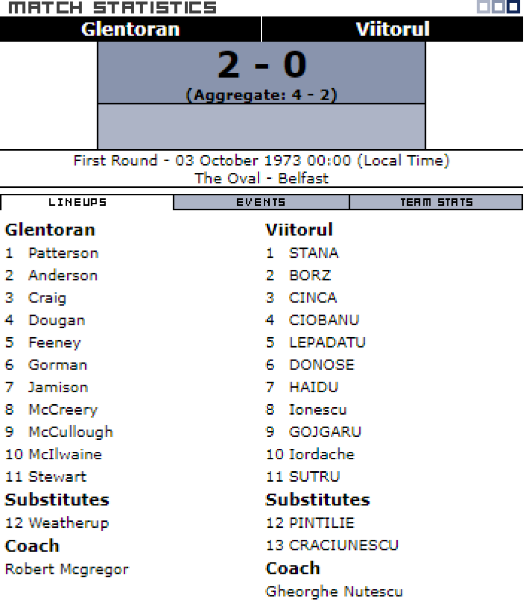 «Гленторан» Белфаст - «Химия» Рымнику-Вылча - 2:0