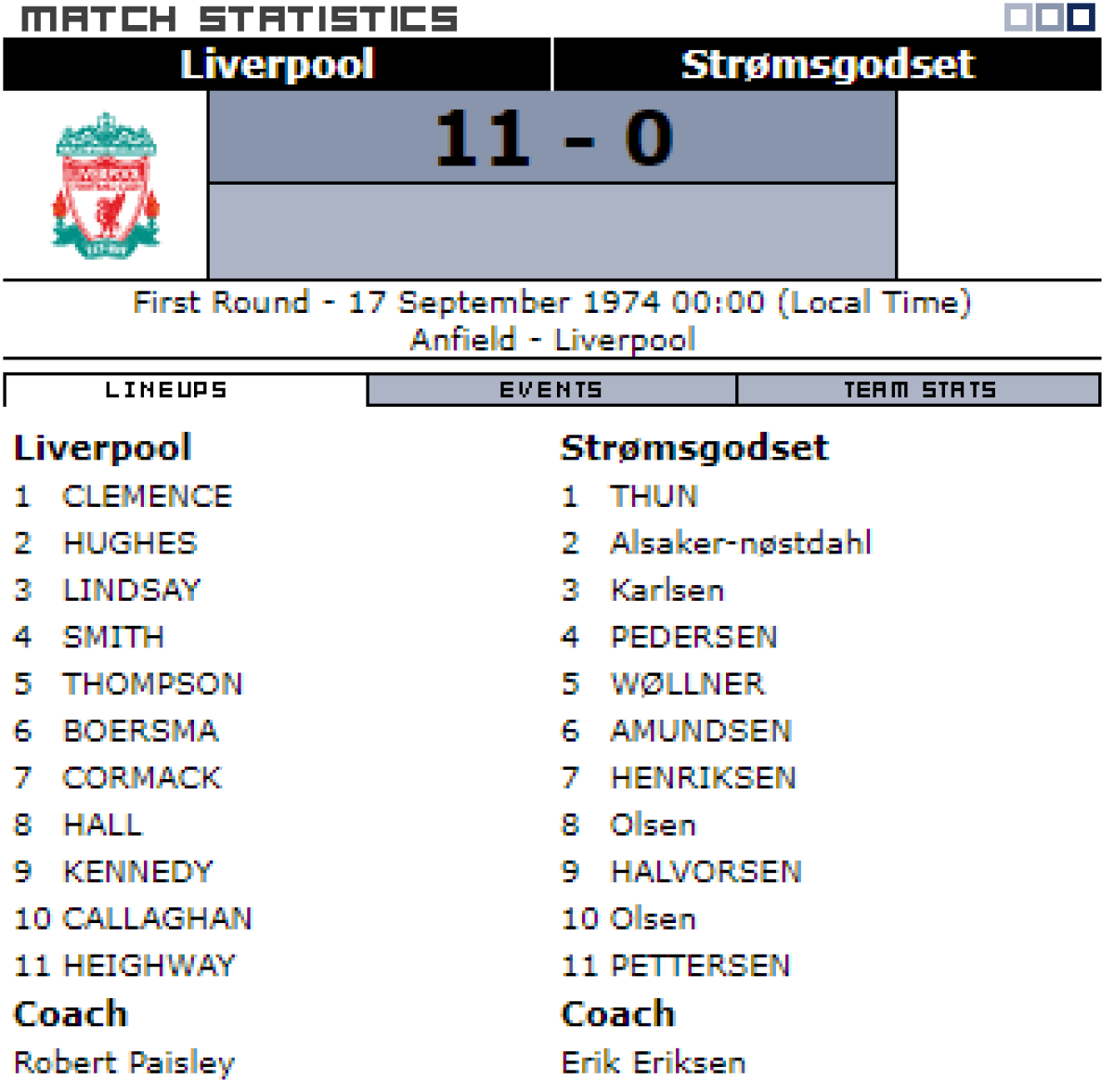 «Ливерпуль» Ливерпуль - «Стрёмсгодсет» Драммен - 11:0