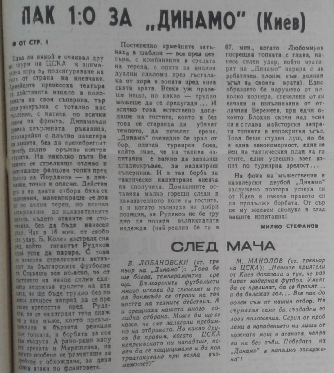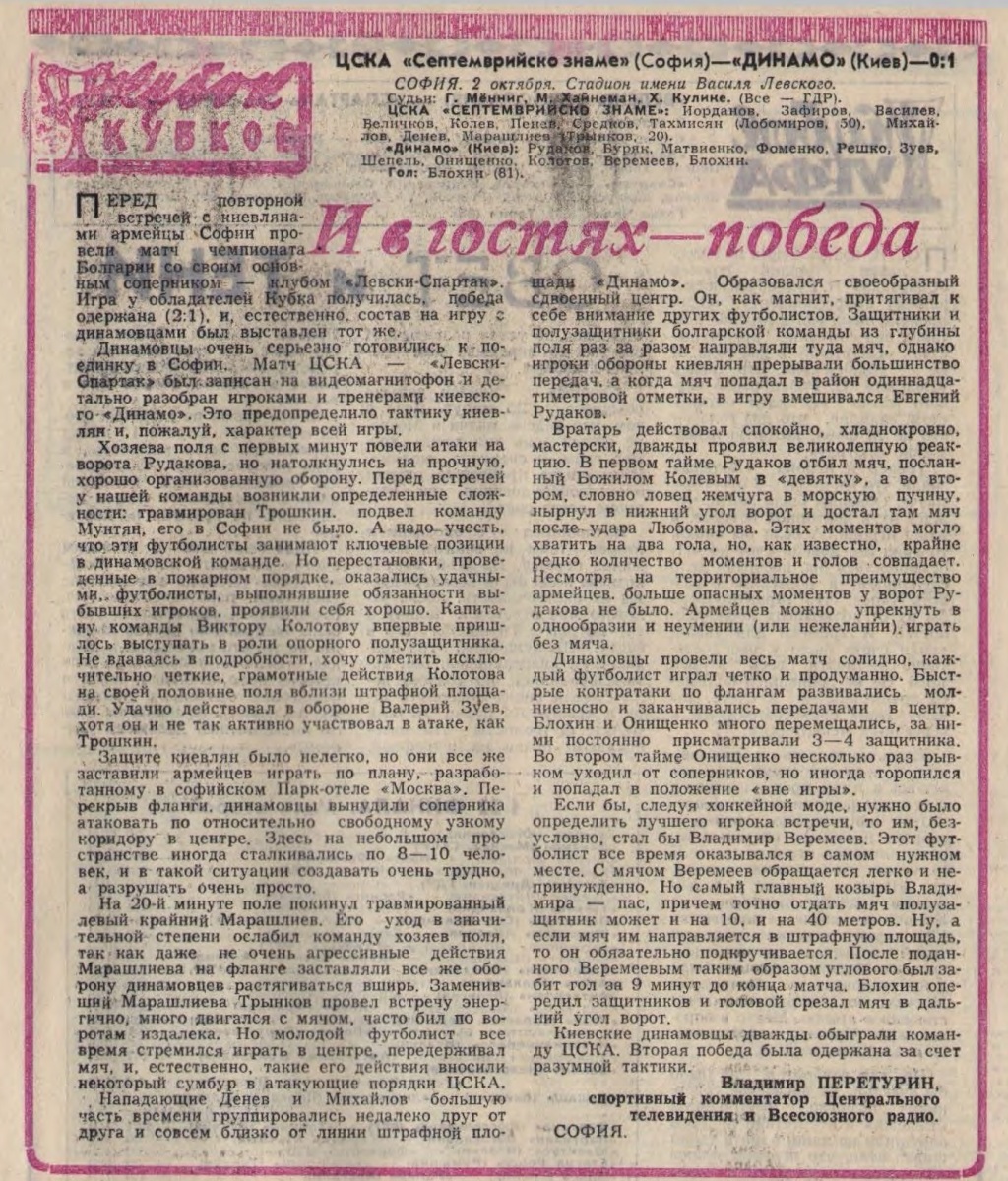 «ЦСКА Септемврийско Знаме» София - «Динамо» Киев - 0:1