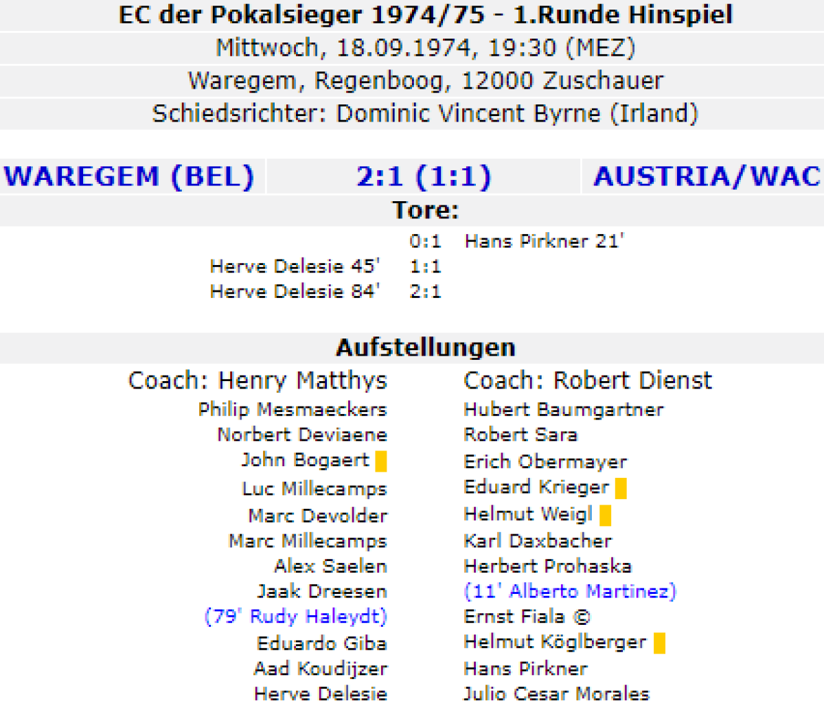 «Варегем» Варегем - «Аустрия-ВАК» Вена - 2:1
