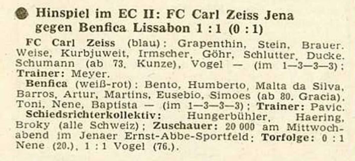 «Карл Цейсс» Йена - «Бенфика» Лиссабон - 1:1