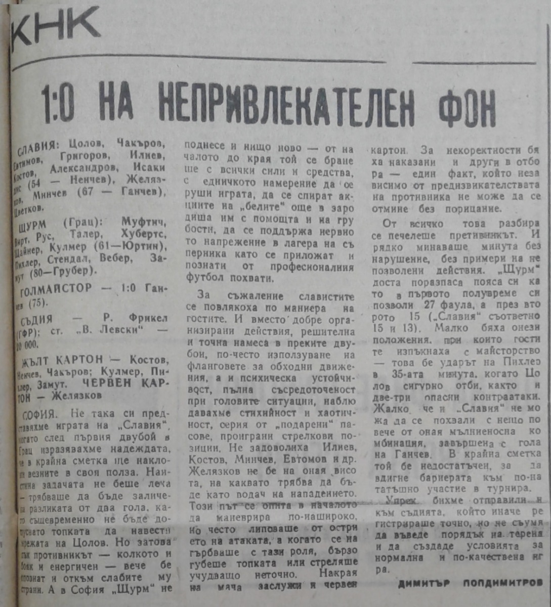 «Славия» София - «Штурм» Грац - 1:0