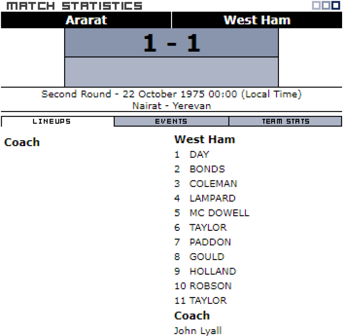 «Арарат» Ереван - «Вест Хэм Юнайтед» Лондон - 1:1