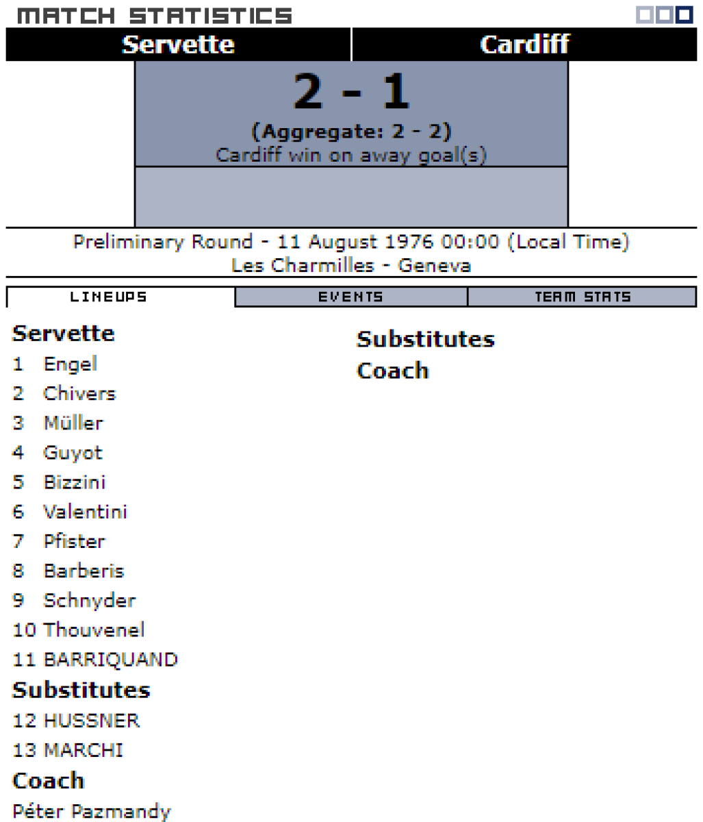 «Серветт» Женева - «Кардифф Сити» Кардифф - 2:1