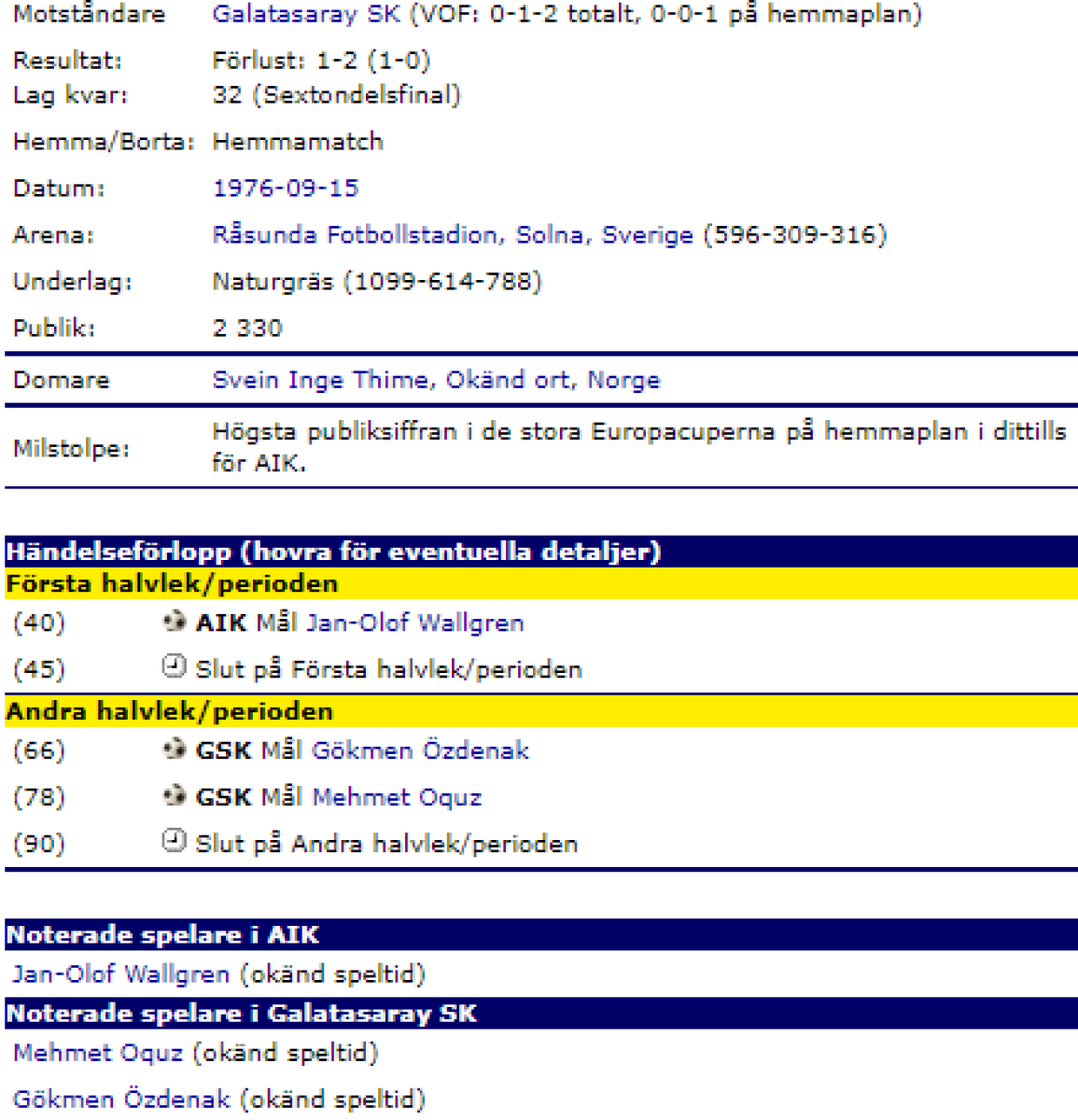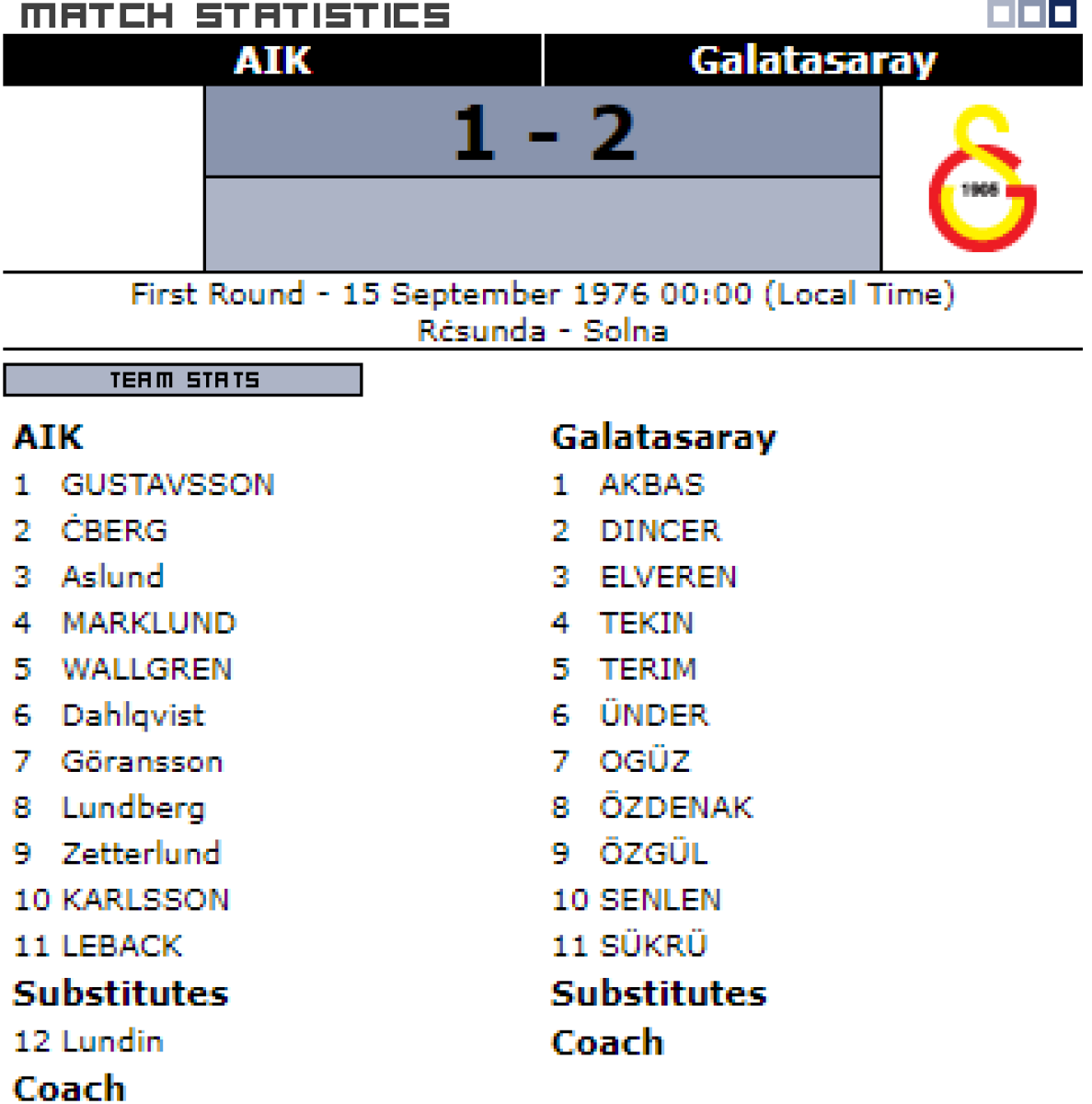 АИК Стокгольм - «Галатасарай» Стамбул - 1:2