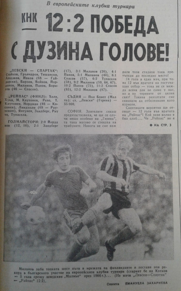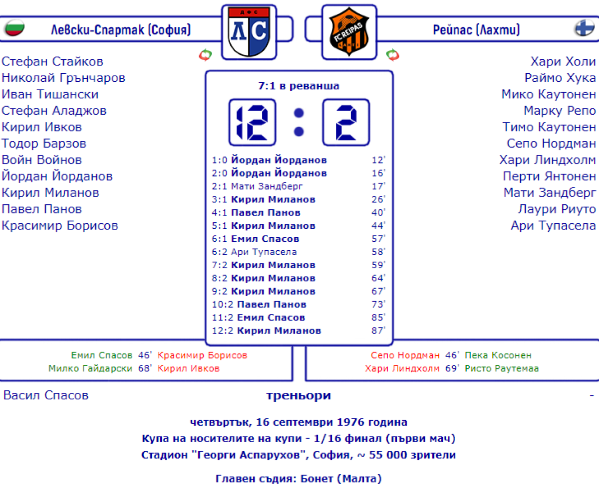 «Левски-Спартак» София - Лахти - 12:2