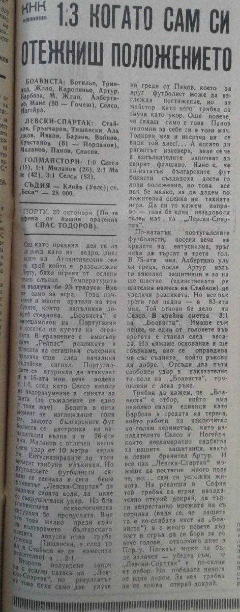 «Боавишта» Порту - «Левски-Спартак» София - 3:1