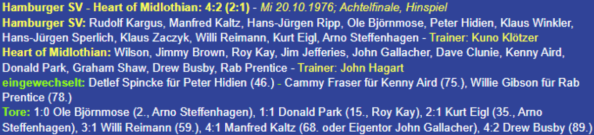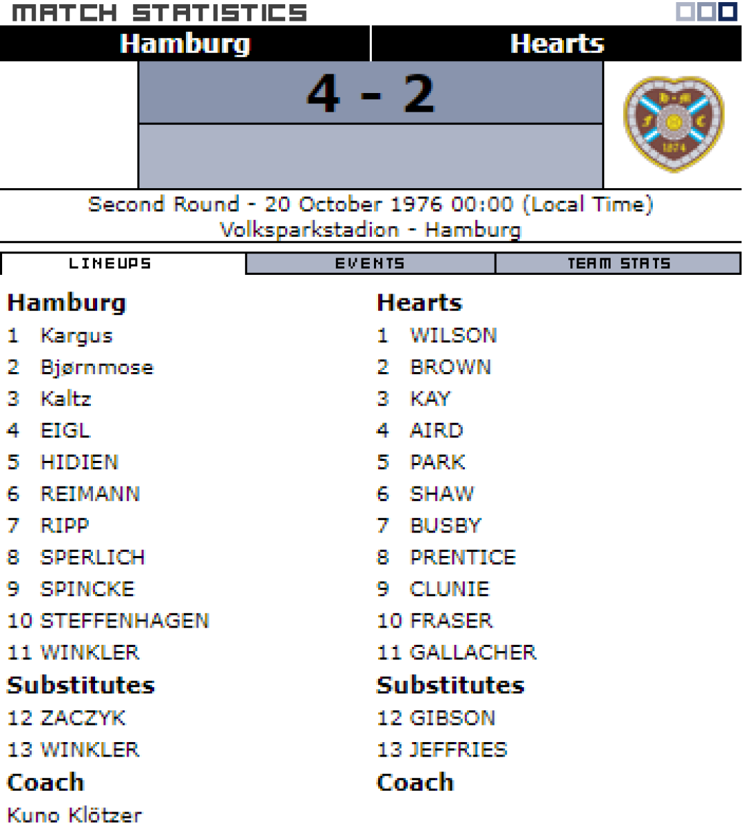 «Гамбургер» Гамбург - «Харт оф Мидлотиан» Эдинбург - 4:2