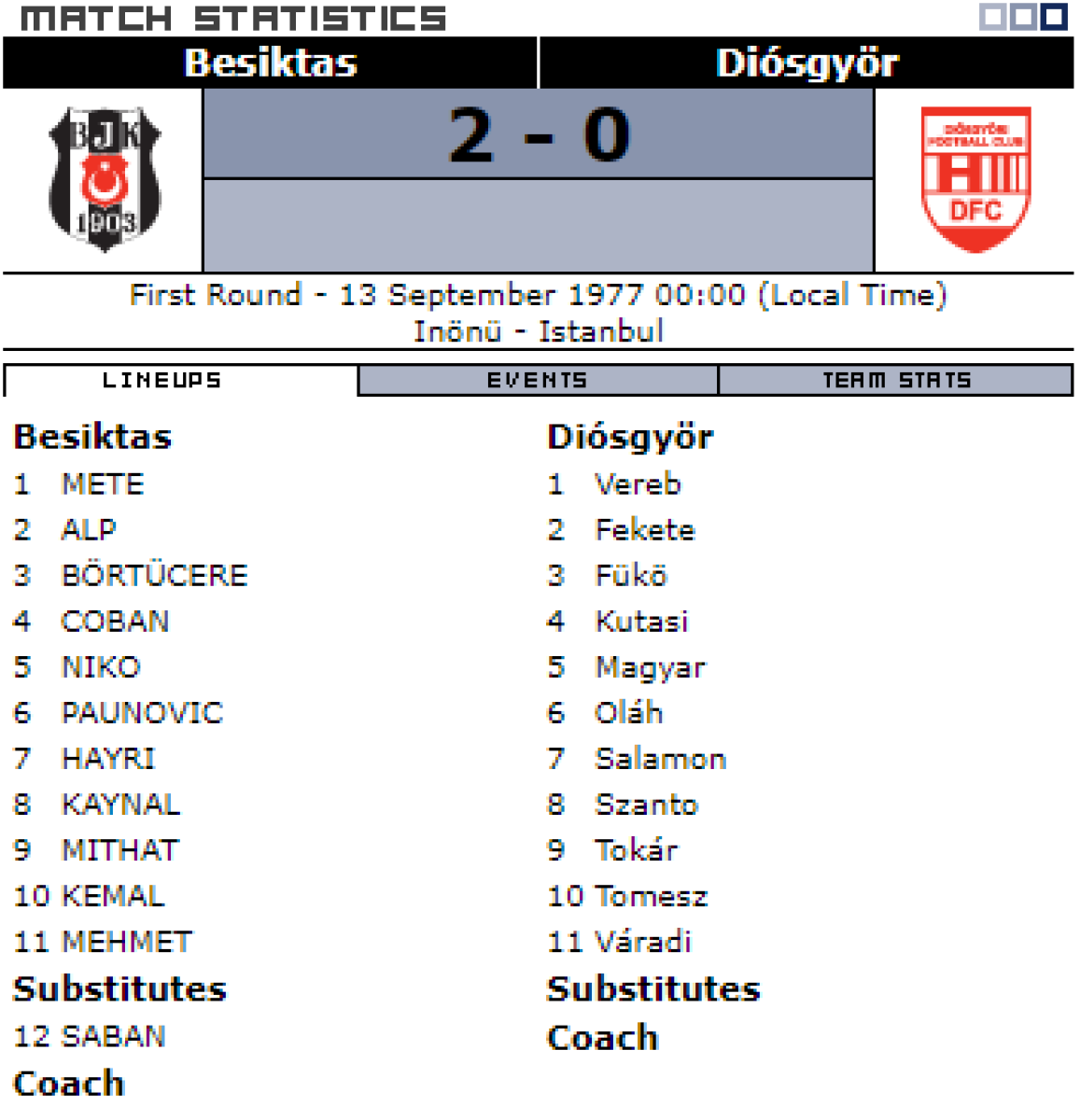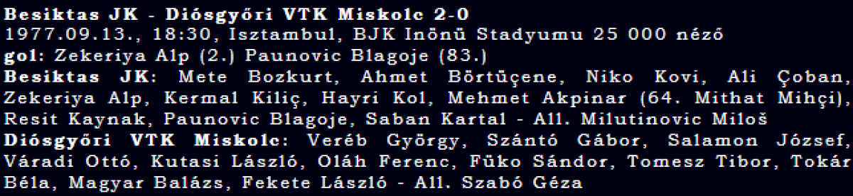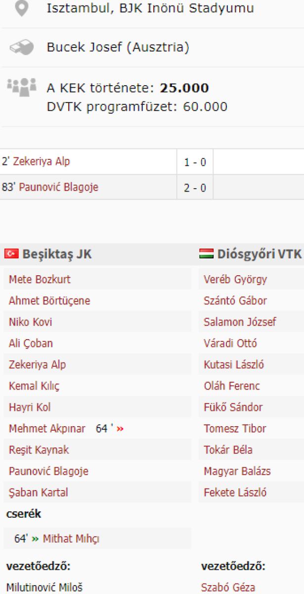 «Бешикташ» Стамбул - «Диошдьёр ВТК Мишкольц» Мишкольц - 2:0