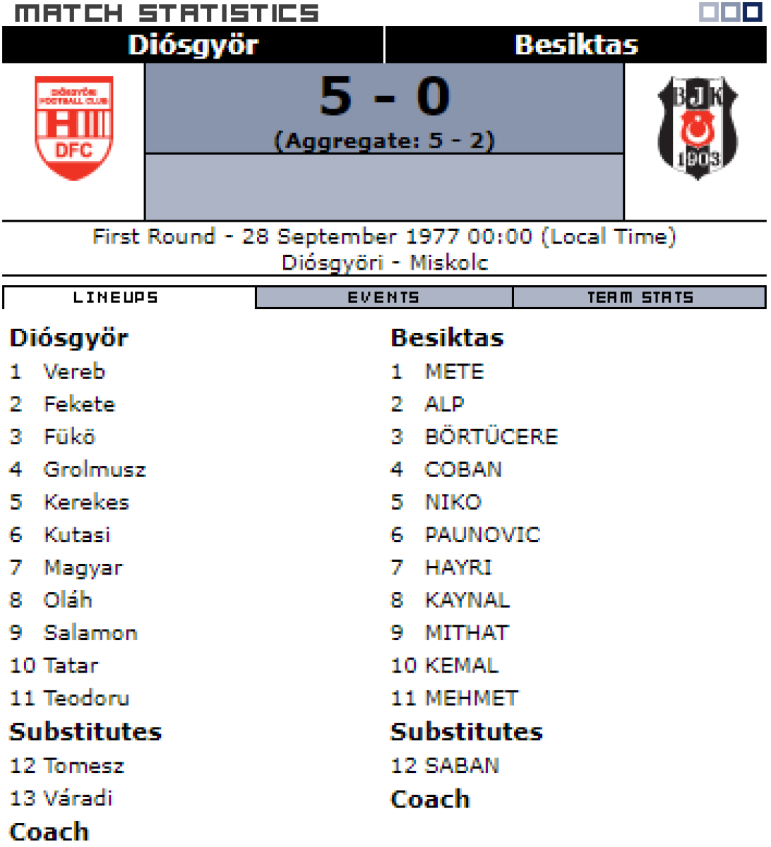 «Диошдьёр ВТК Мишкольц» Мишкольц - «Бешикташ» Стамбул - 5:0