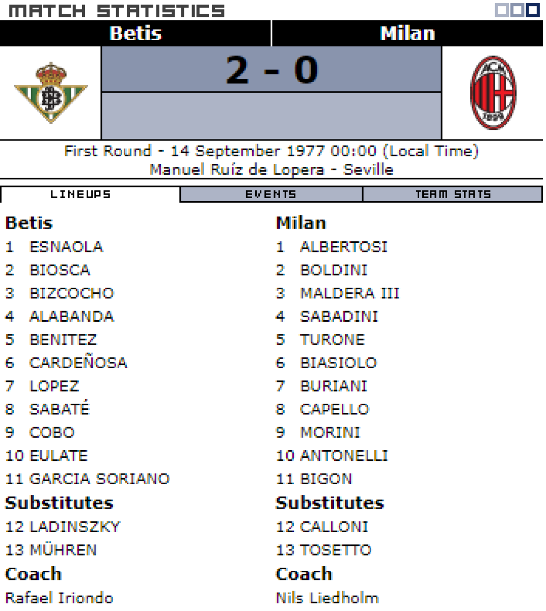 «Реал Бетис» Севилья - «Милан» Милан - 2:0