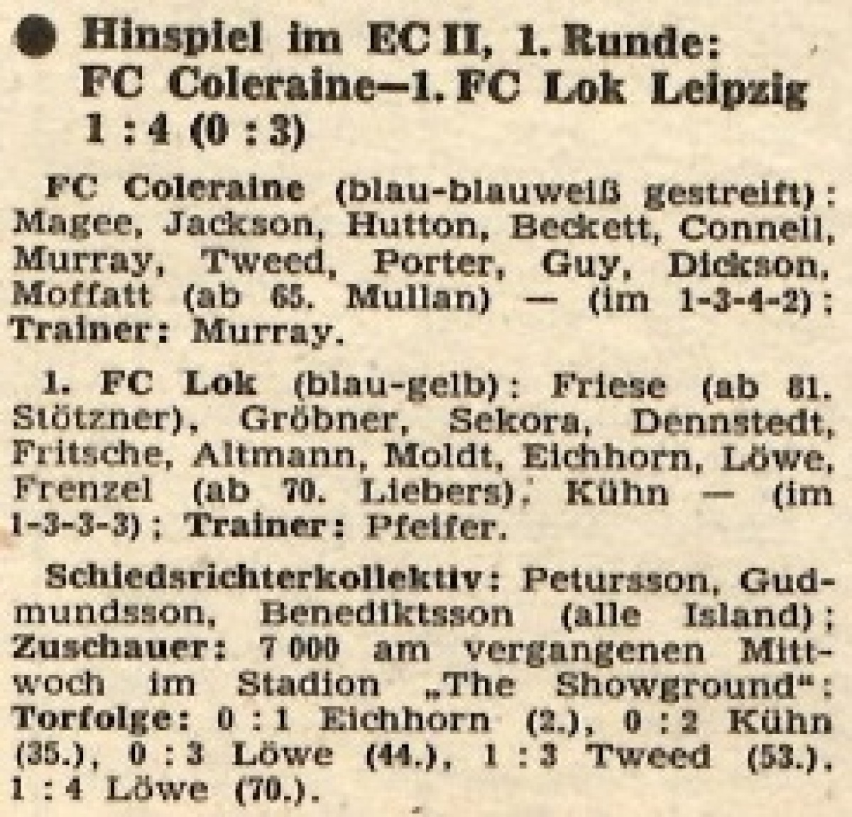 «Колрейн» Колрейн - «1. ФК Локомотив» Лейпциг - 1:4