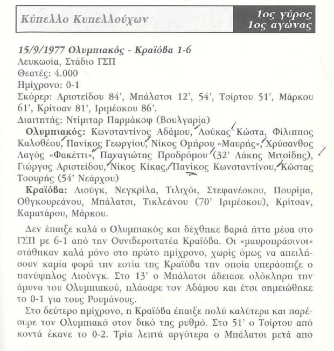 «Олимпиакос» Никосия - «Университатя» Крайова - 1:6