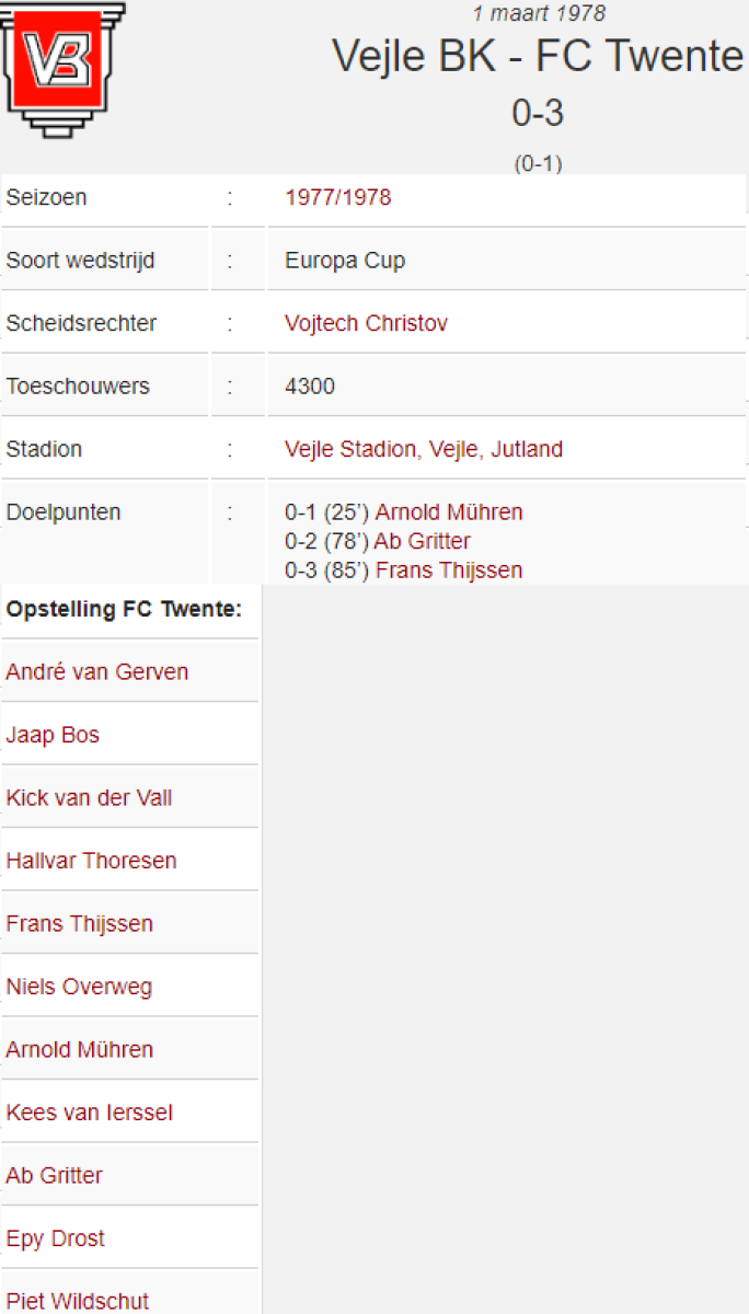 «Вайле БК» Вайле - «Твенте» Энсхеде - 0:3