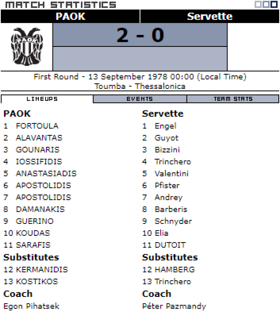 ПАОК Салоники - «Серветт» Женева - 2:0