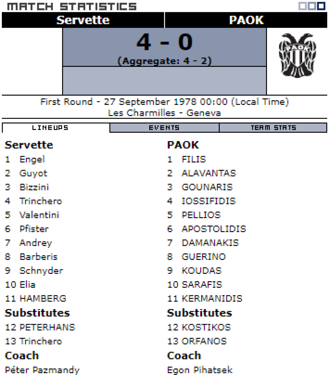 «Серветт» Женева - ПАОК Салоники - 4:0