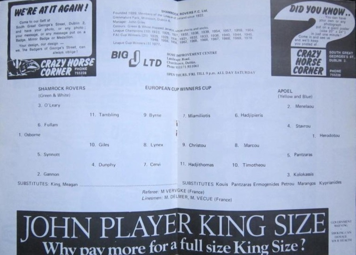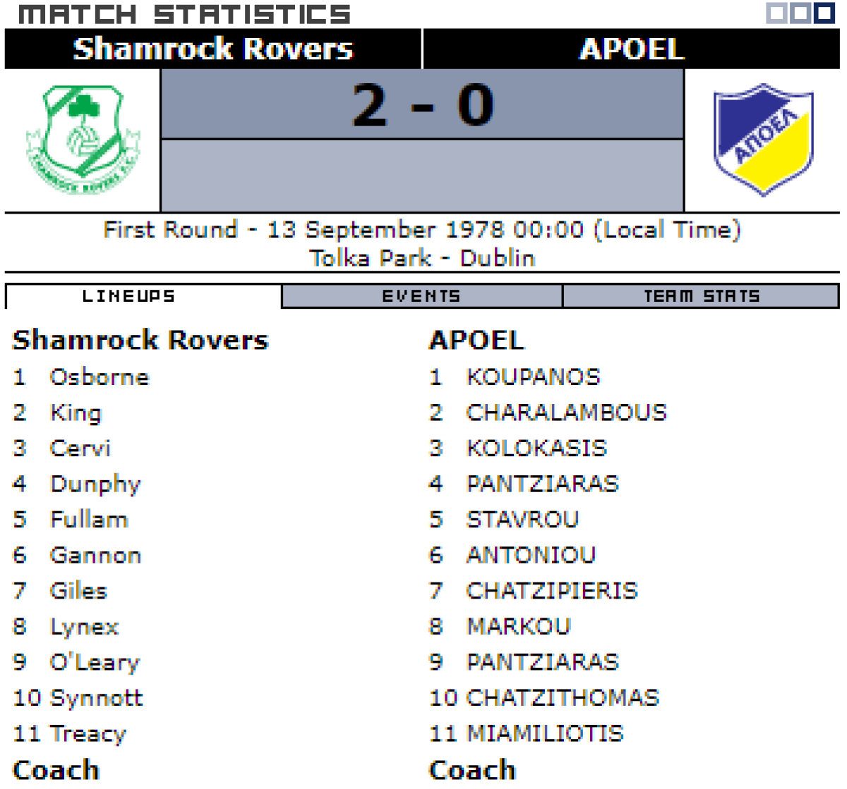 «Шемрок Роверс» Дублин - АПОЭЛ Никосия - 2:0
