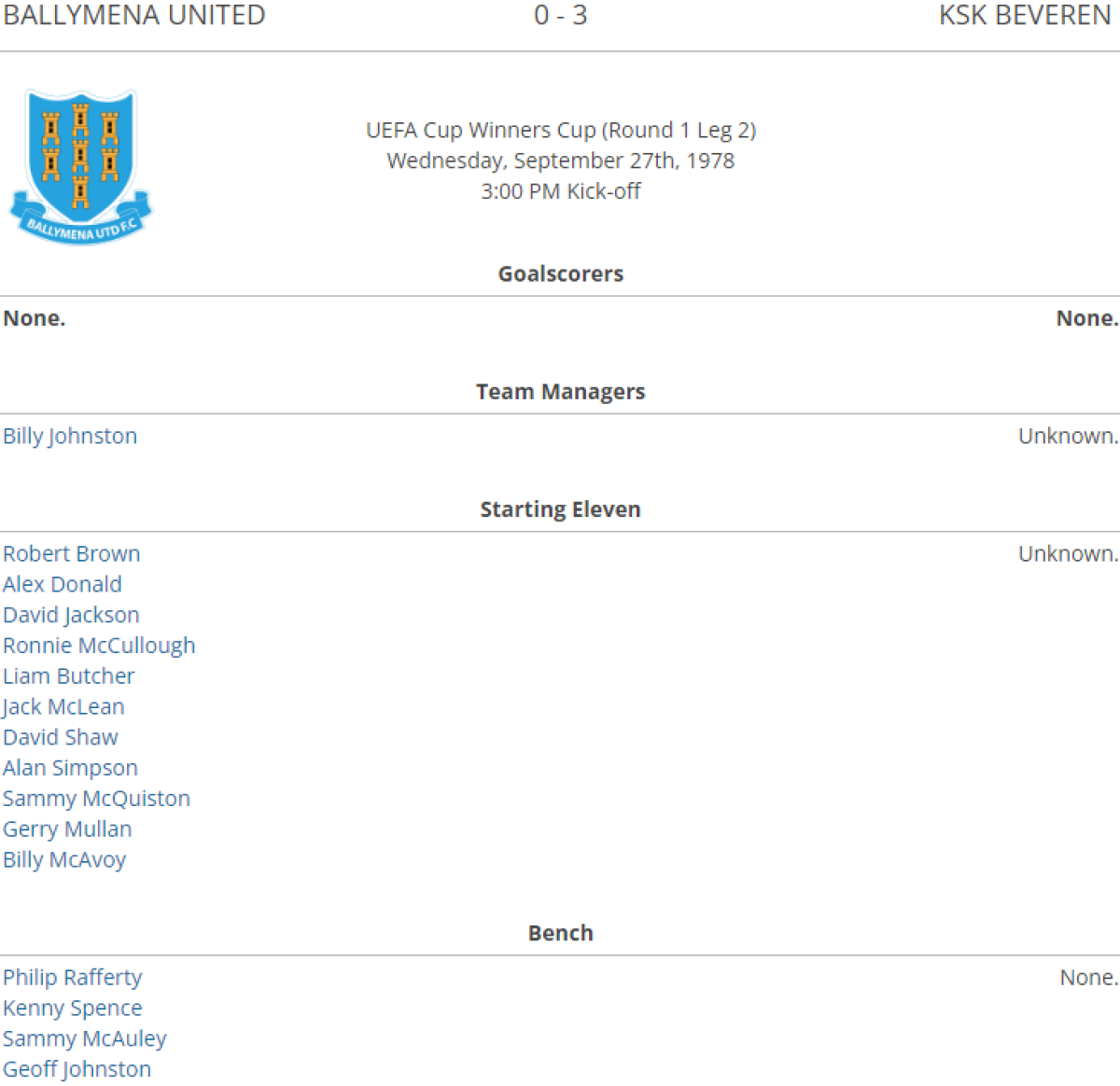 «Баллимена Юнайтед» Баллимена - «Беверен» Беверен - 0:3