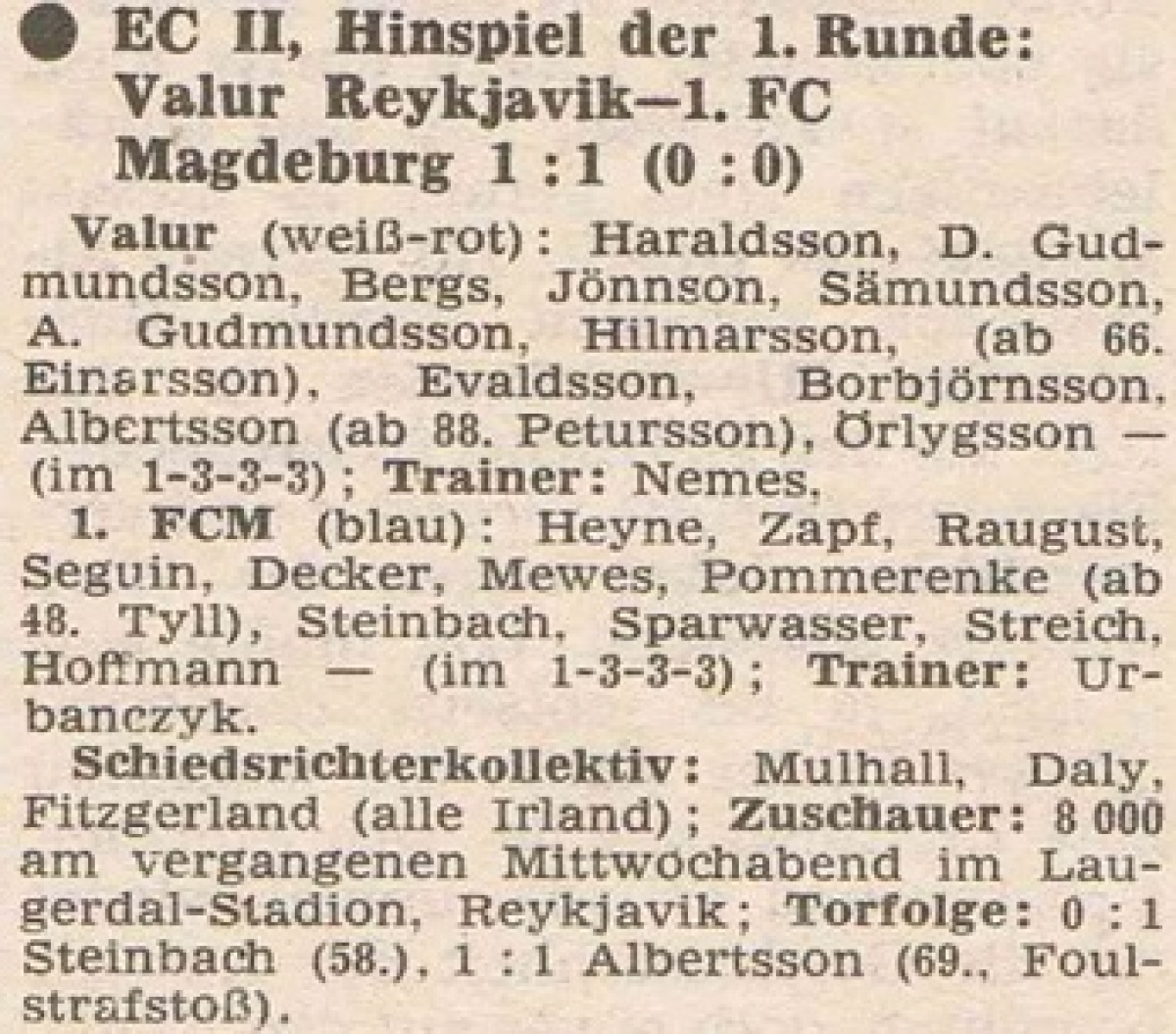 «Валюр» Рейкьявик - «1. ФК Магдебург» Магдебург - 1:1