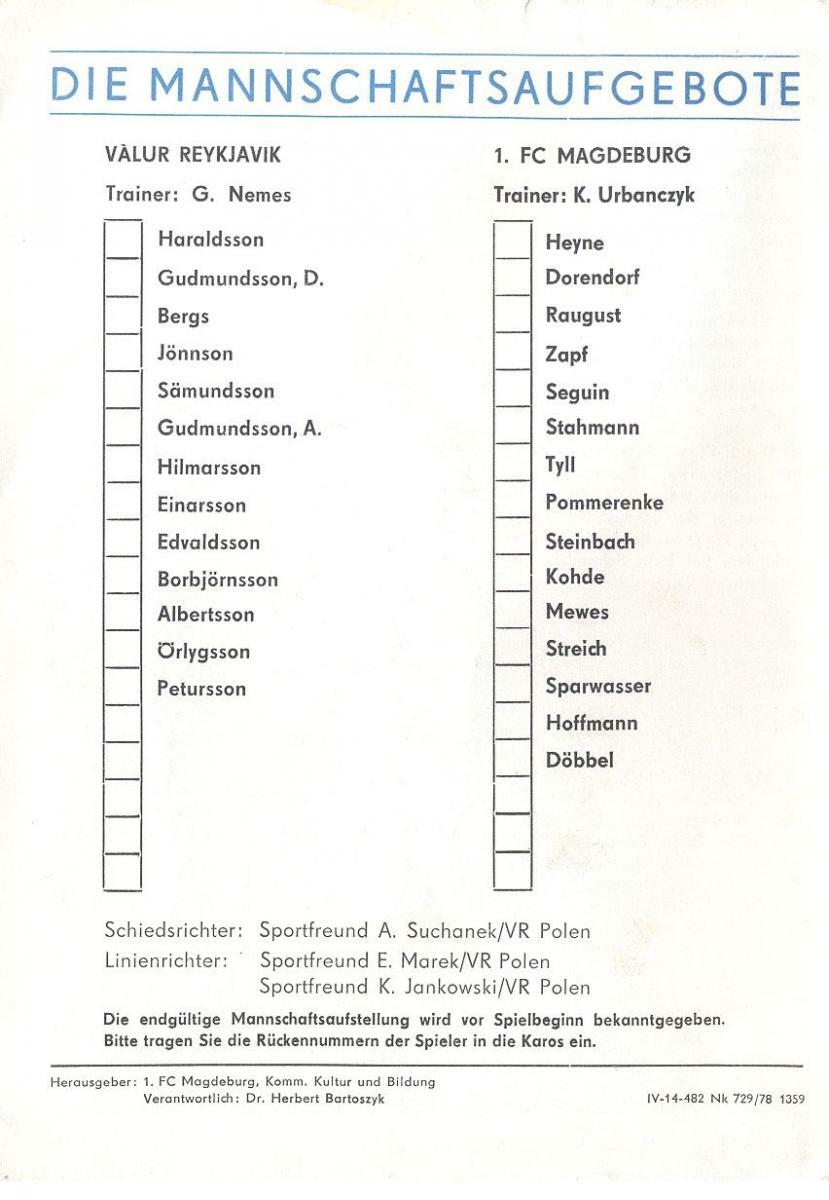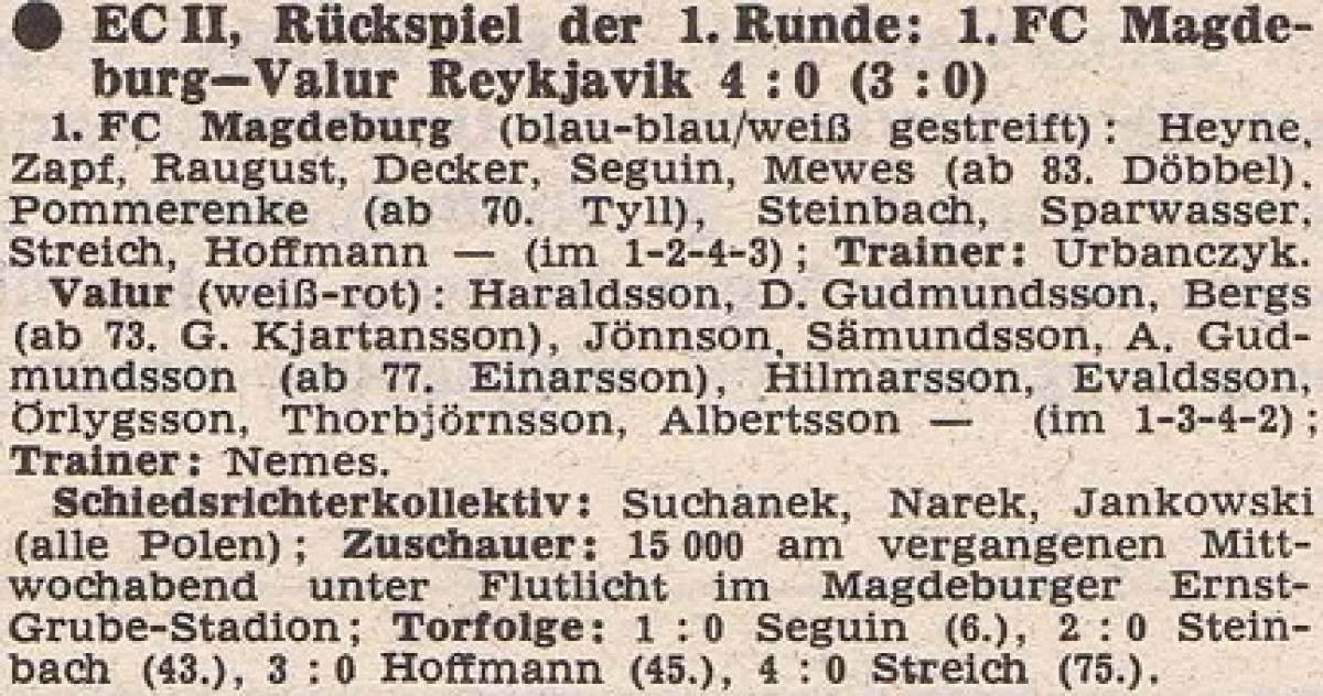 «1. ФК Магдебург» Магдебург - «Валюр» Рейкьявик - 4:0