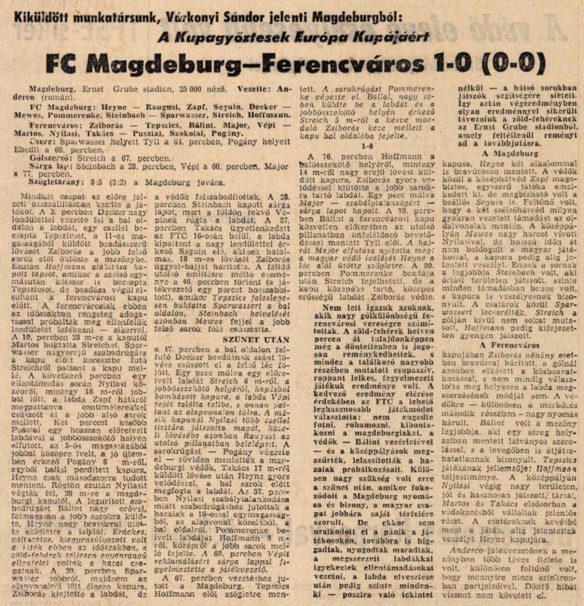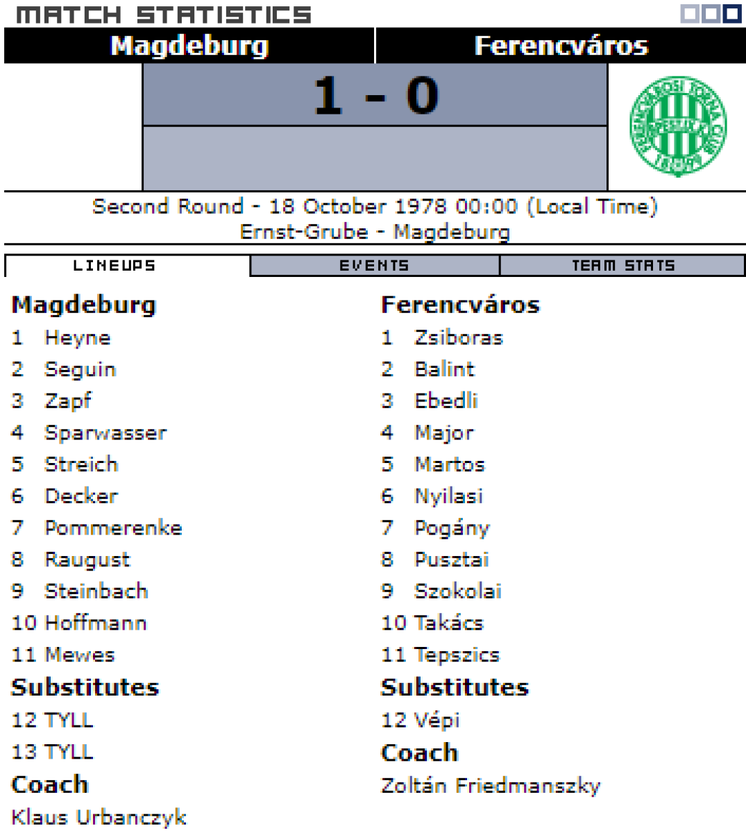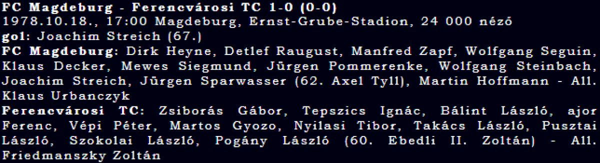 «1. ФК Магдебург» Магдебург - «Ференцварош» Будапешт - 1:0