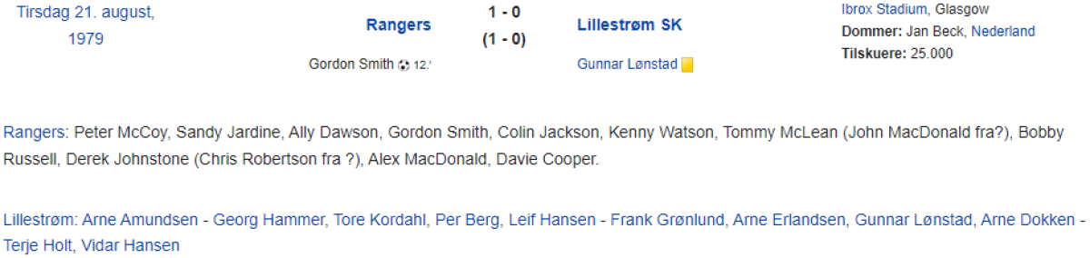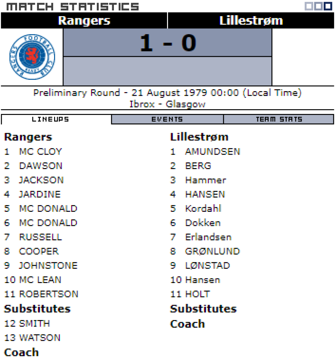 «Рейнджерс» Глазго - «Лиллестрём» Лиллестрём - 1:0