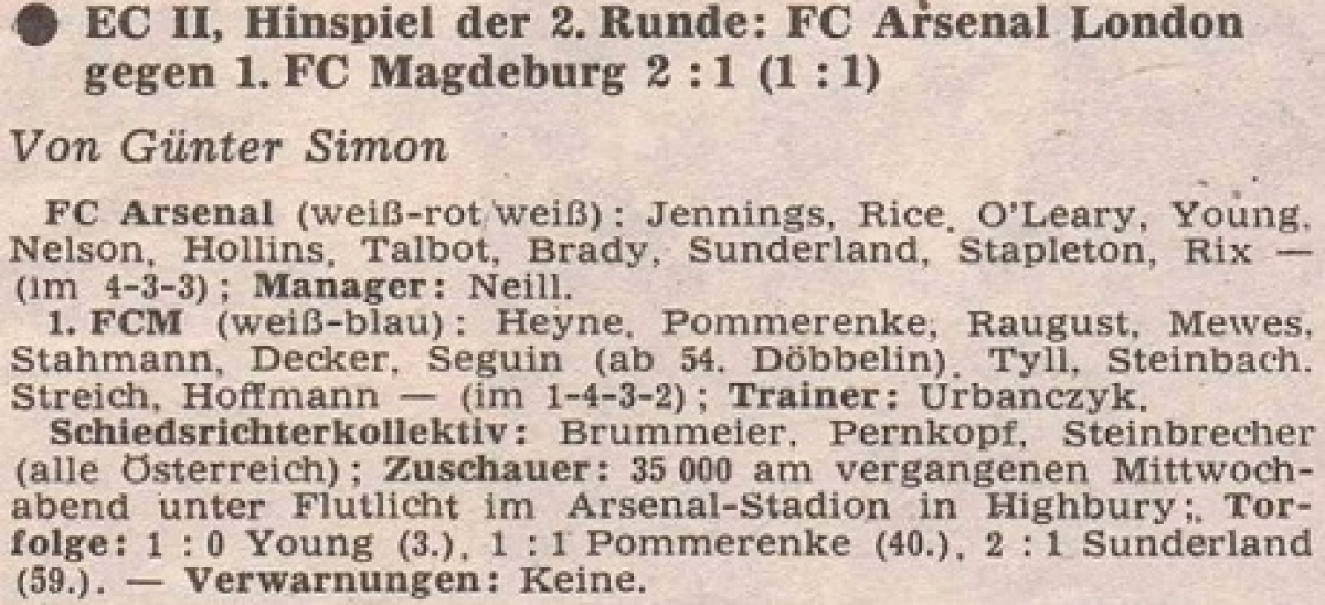 «Арсенал» Лондон - «1. ФК Магдебург» Магдебург - 2:1