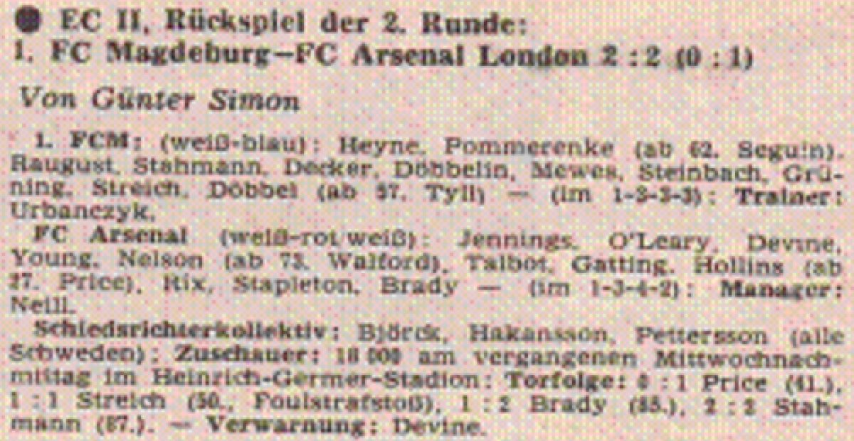 «1. ФК Магдебург» Магдебург - «Арсенал» Лондон - 2:2