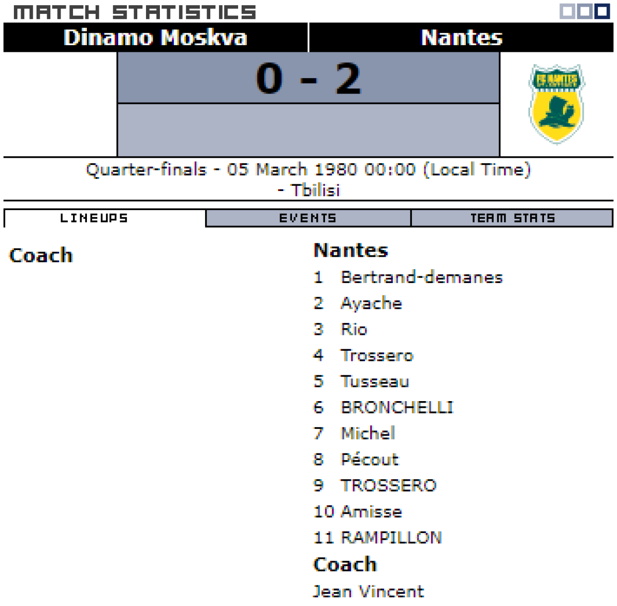 «Динамо» Москва - «Нант» Нант - 0:2