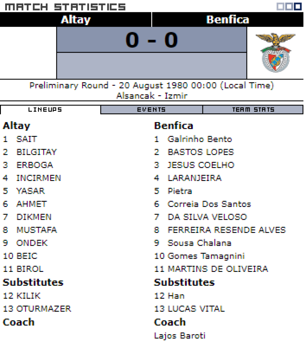 «Алтай» Измир - «Бенфика» Лиссабон - 0:0