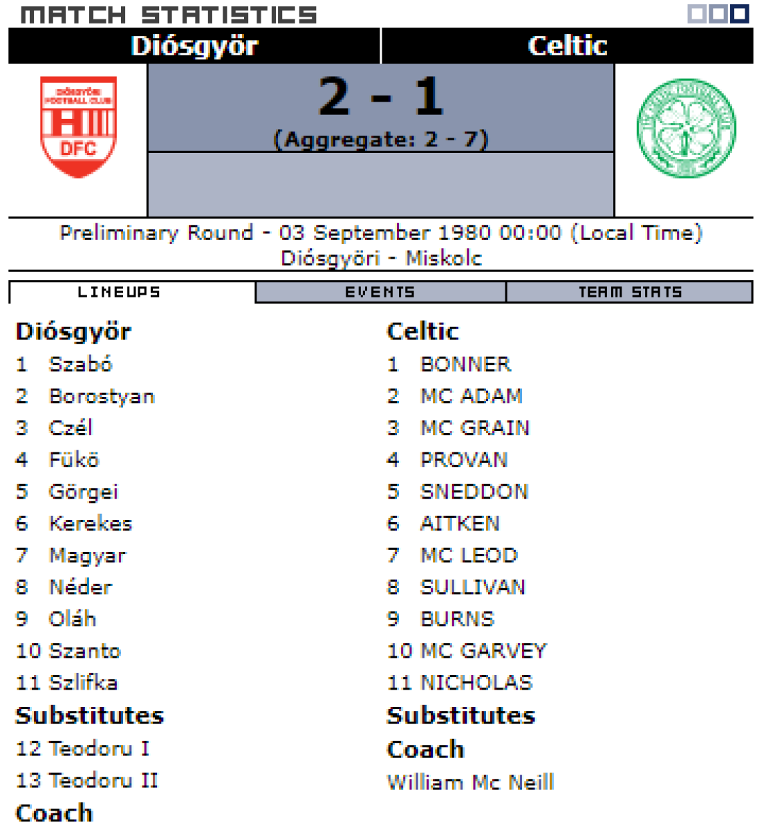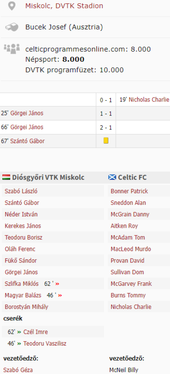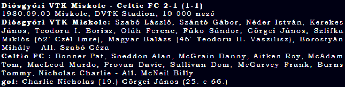 «Диошдьёр ВТК Мишкольц» Мишкольц - «Селтик» Глазго - 2:1