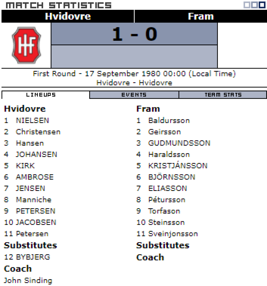 «Видовре» Видовре - «Фрам» Рейкьявик - 1:0