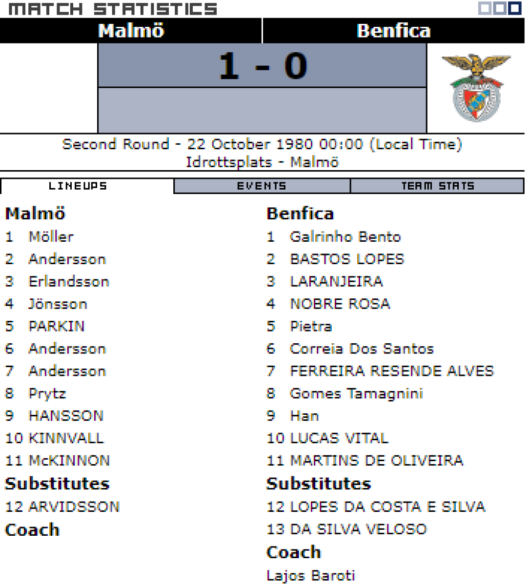 «Мальмё» Мальмё - «Бенфика» Лиссабон - 1:0